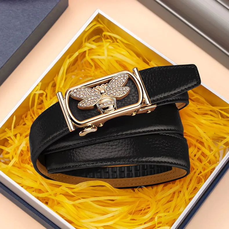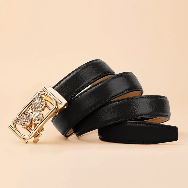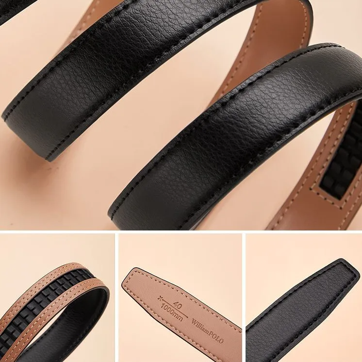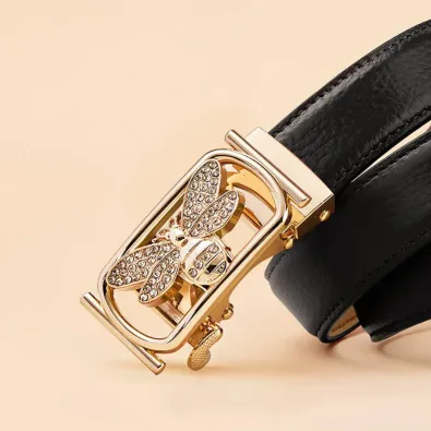 Color: The belt features a classic black strap paired with an elegant gold buckle.Upper Material: It uses genuine leather crafted from the top layer of C-o-w-h-i-d-e for a premium feel.Belt Buckle Material: The buckle is made from alloy, offering both durability and style.Processing Method: The belt undergoes a paint surface process for a refined finish.Brand: William POLO designs this belt with a commitment to quality and sophistication.Fastening Method: An automatic buckle provides a convenient and secure closure.Style Specification: The belt embodies a fresh and sweet aesthetic, enhancing any outfit.Pattern: It features a solid pattern, ensuring a clean and versatile look.Size (Adjustable): The belt’s adjustable length of 110 CM accommodates various fits.