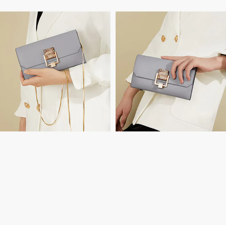 Color: The purse showcases a sophisticated gray-blue hue, providing a versatile and refined look.Upper Material: Genuine leather constructs the exterior, ensuring a high-quality and resilient surface.Brand: William POLO is the brand behind this purse, known for its premium craftsmanship and design.Cortical Features: The purse features two layers of C-o-w-h-i-d-e, adding extra durability and a luxurious texture.Style: The urban simplicity style presents a modern and streamlined appearance, perfect for city life.Pattern Type: The solid pattern highlights the purse’s clean and understated elegance.Size: Measuring 20 cm in length and 12 cm in width, the purse offers ample space in a sleek, compact form.
