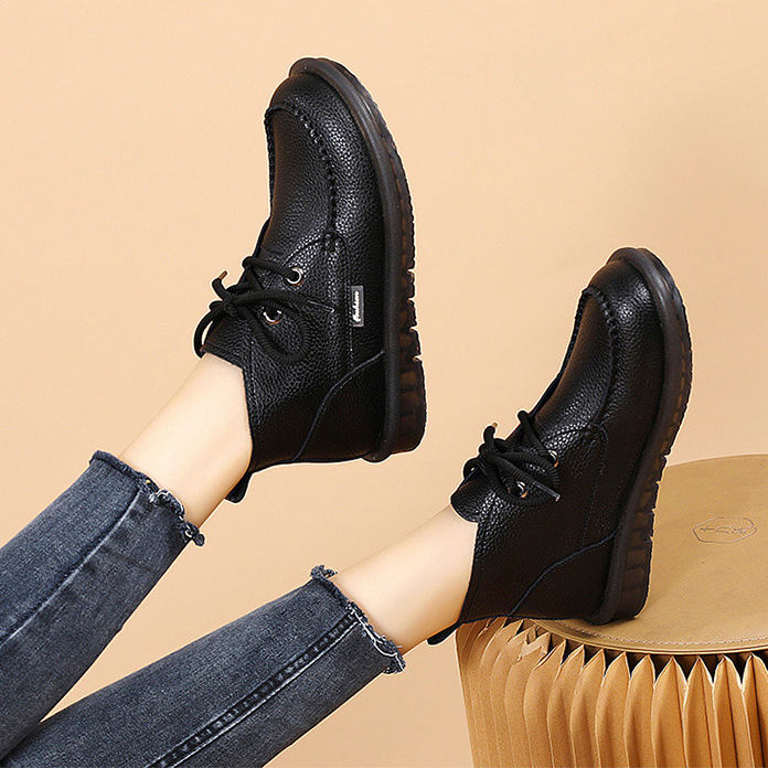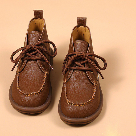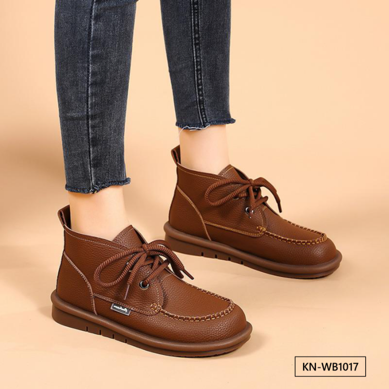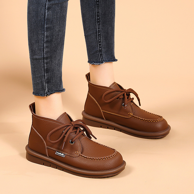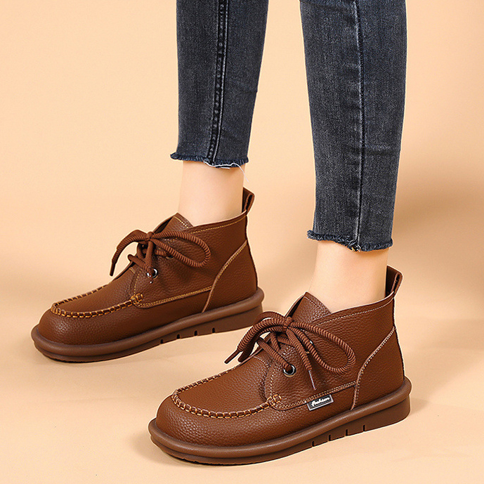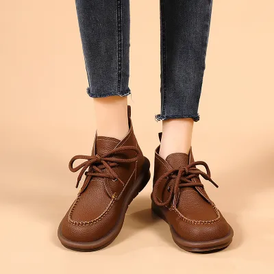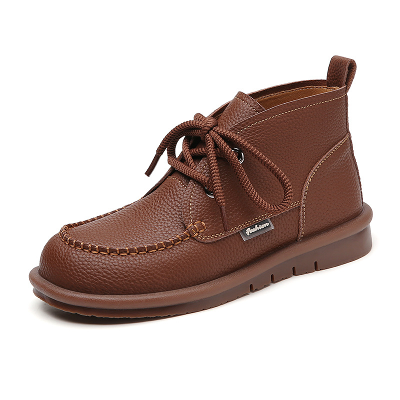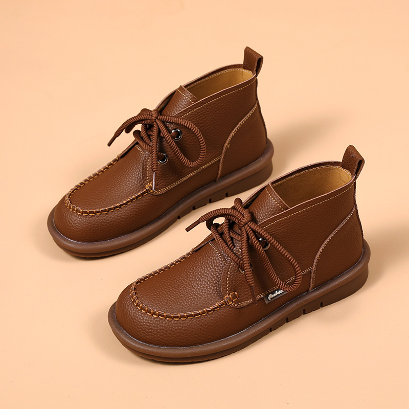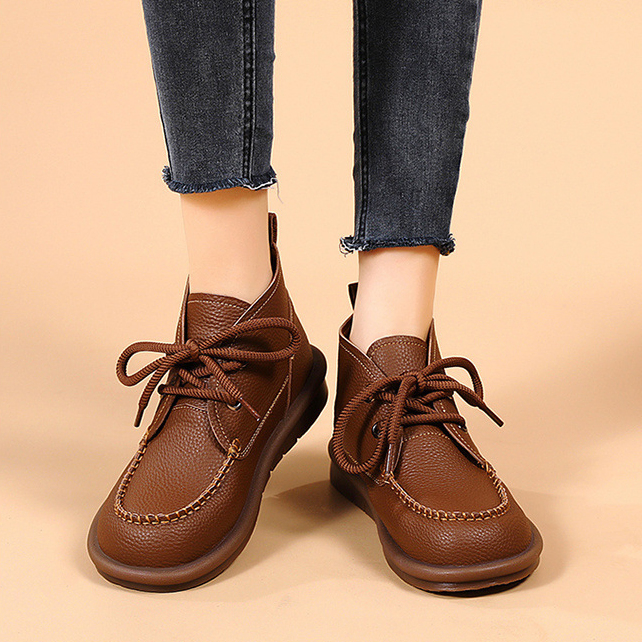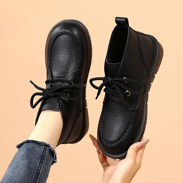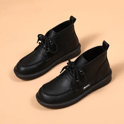 Color: Available in Black and Brown, these boots offer classic shades that enhance a variety of outfits.Upper Material: The genuine C-o-w-h-i-d-e leather upper ensures a luxurious feel and robust durability, combining style with longevity.Outsole Material: The rubber sole provides reliable traction and flexibility, contributing to a stable and comfortable walking experience.Insole Material: The PU Leather insole offers plush cushioning and support, making the boot comfortable for extended wear.Toe Shape: The round head toe shape allows for natural toe movement and ensures a comfortable fit.Closure Type: The lace-up design allows for a customizable fit and adds a touch of classic styling.Pattern Type: The solid pattern provides a clean and versatile look, suitable for both casual and semi-formal occasions.Features: Designed to be breathable, wear-resistant, lightweight, and anti-slip, this boot combines practicality with all-day comfort.