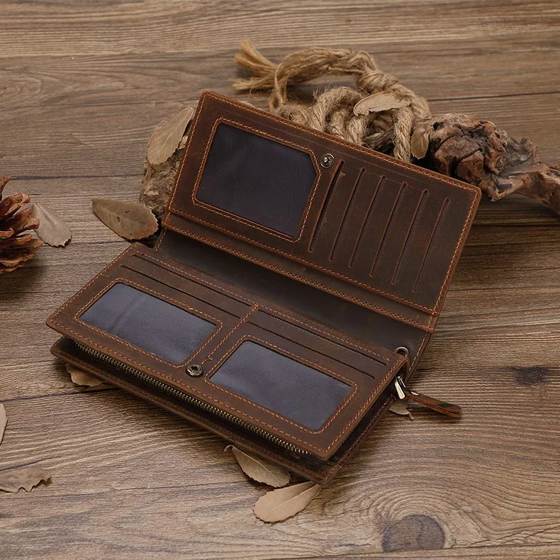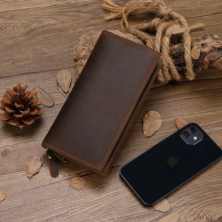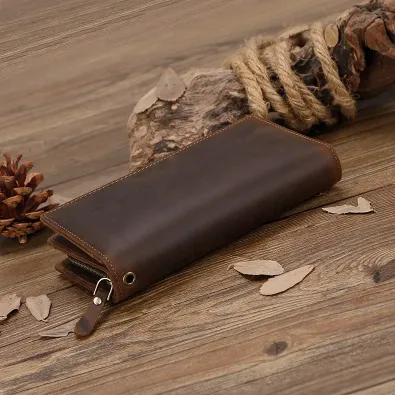 Color: This wallet boasts a rich brown color.Brand: Luostu manufactures this sophisticated and functional wallet.Upper Material: It utilizes genuine horse leather, ensuring durability and a premium finish.Folding: Featuring a 2-fold design, the wallet offers enhanced organization.Lining: Polyester lines the interior, providing a smooth and resilient texture.Pattern: The solid color pattern gives the wallet a timeless and elegant appearance.Length: Measuring 7.48 inches long, it offers generous space for belongings.Width: With a width of 3.74 inches, it comfortably fits in pockets or bags.