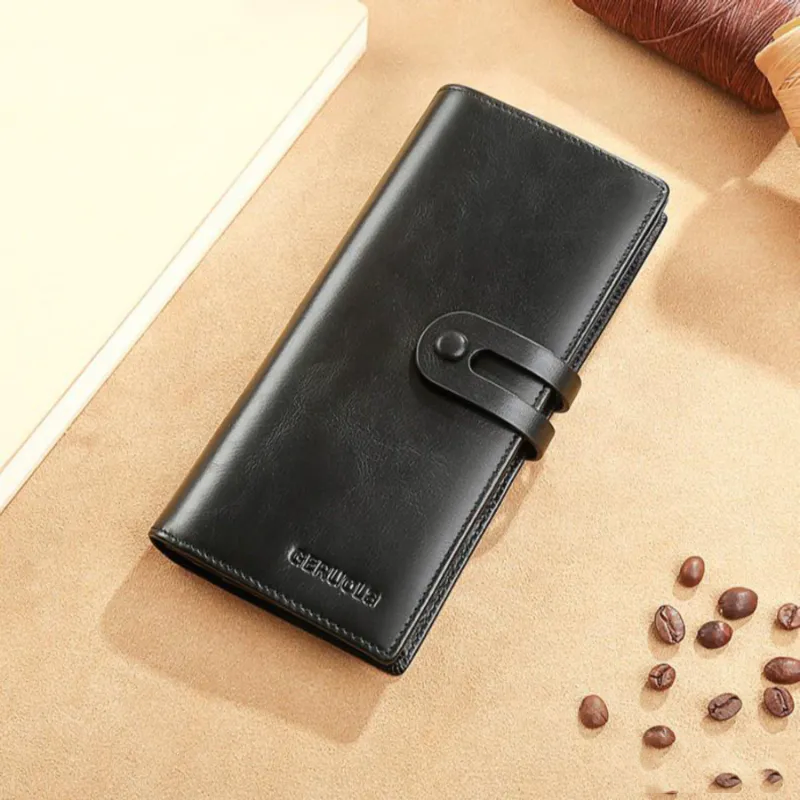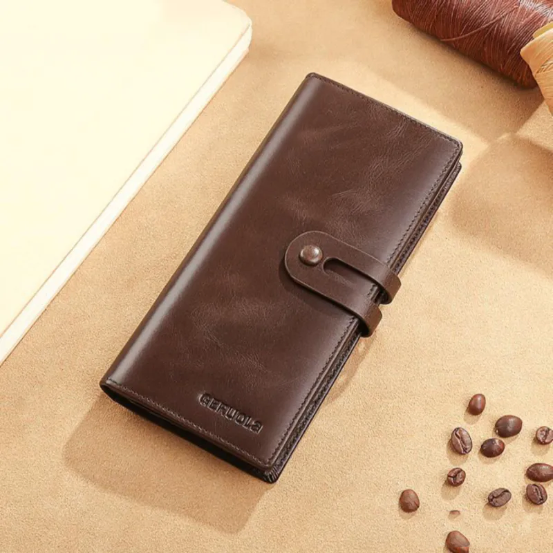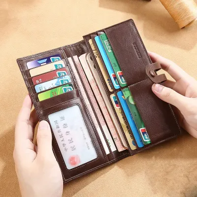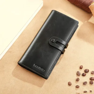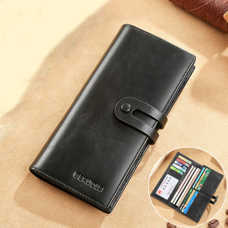 Color: This wallet comes in both classic black and timeless brown colors.Brand: Geruola introduces this stylish and practical wallet.Upper Material: Crafted from genuine leather, it ensures durability and a premium texture.Opening Method: It features a secure buckle opening for added convenience and security.Folding: The wallet is designed with a 2-fold structure for better organization.Lining: Polyester lines the interior, providing a smooth and resilient finish.Pattern: With a solid color design, it maintains a sleek and versatile appearance.Length: Measuring 7.48 inches in length, this wallet offers ample space for essentials.Width: At 3.54 inches wide, it comfortably fits into most pockets or bags.