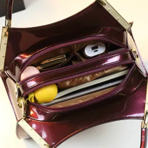 Color: Choose from classic Black or vibrant Purple for a stylish statement.Upper Material: Crafted from PU Leather, offering both elegance and durability.Hardness: The soft hardness provides a flexible and comfortable feel.Number of Shoulder Straps: The handbag features a single shoulder strap for easy carrying.Opening Method: The zipper buckle ensures secure closure and easy access.Lining Texture: Inside, the PU Leather lining adds a touch of sophistication.Pattern Type: A solid pattern gives the handbag a sleek and timeless look.Size: Measuring 11.81" (L) x 7.87" (H) x 5.11" (W), it offers ample space with a refined silhouette