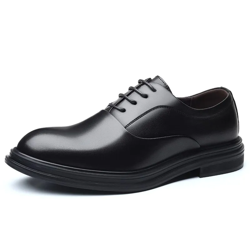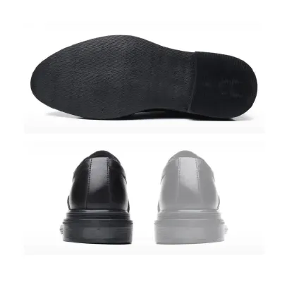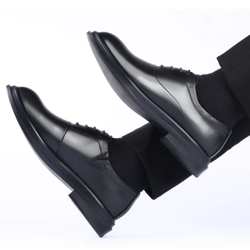 Color: The shoe comes in black, exuding a sleek and timeless appearance.Upper Material: Constructed from genuine C-o-w-h-i-d-e leather, ensuring durability and a premium texture.Outsole Material: The outsole is made of rubber, providing excellent grip and flexibility.Toe Shape: Designed with a round head toe shape, offering comfort and ample space.Closure Type: It features a lace-up closure, allowing for a customizable and secure fit.Pattern Type: The shoe showcases a solid pattern, maintaining a clean and versatile aesthetic.Features: It is breathable, keeping feet cool and dry; wear-resistant for long-lasting use; lightweight for effortless wear; and anti-slip for stability on various surfaces.