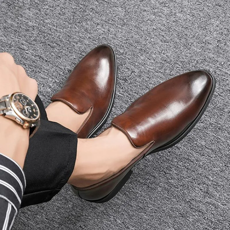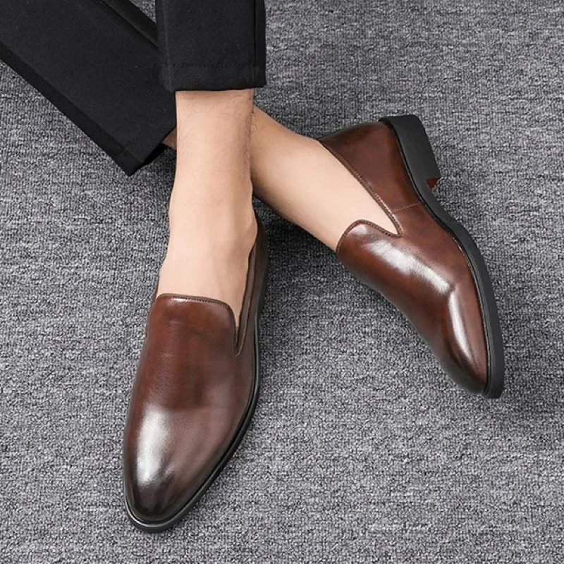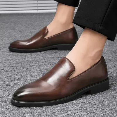 Color: The shoe showcases a rich, earth-toned brown hue.Upper Material: Crafted from durable microfiber leather for the upper.Outsole Material: Features a robust rubber outsole for dependable traction.Insole Material: Incorporates a comfortable microfiber leather insole for added cushioning.Toe Shape: Designed with a sleek and pointed toe shape for a stylish look.Closure Type: It offers effortless slip-on functionality for quick and easy wear.Pattern Type: The shoe features a consistent solid color for a refined appearance.Features: Engineered to provide breathability, durability, lightweight comfort, and excellent slip resistance.