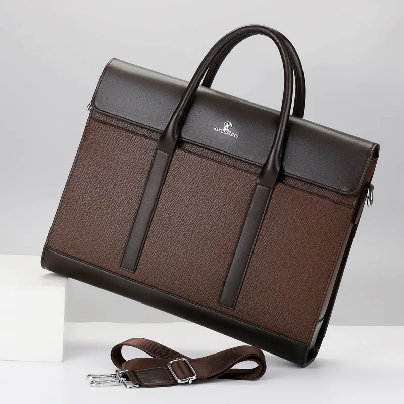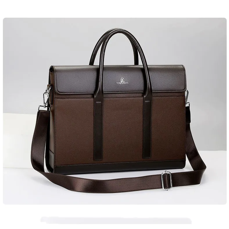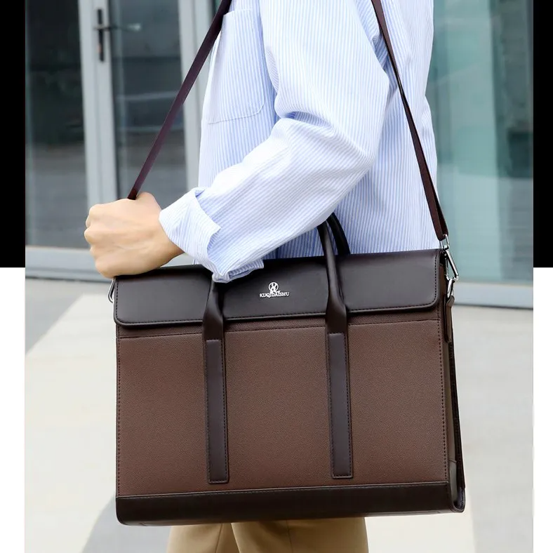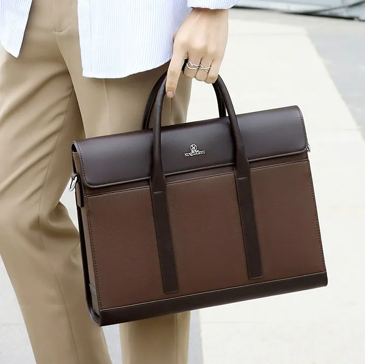 Color: The bag is available in a rich brown, adding an elegant and versatile touch to any outfit.Brand: Kookie Kangaroo creates this bag, renowned for its stylish and functional designs.Upper Material: The bag features PU leather, providing a polished and durable surface.Number of Shoulder Straps: It comes with a single shoulder strap, offering convenience and ease of use.Opening Method: The package cover type opening ensures secure access while maintaining a sleek profile.Hardness: The bag has a medium hardness, balancing structure with flexibility for everyday use.Shape: Designed as a handbag, it combines practicality with a chic and classic form.Pattern: The solid color pattern delivers a timeless and understated style.Lining Material: The polyester lining inside adds durability and a smooth interior finish.Features: The bag offers multi-functionality and includes a compartment for a 14” computer, enhancing its versatility.Weight: At 1 kg, the bag provides a solid, well-constructed feel while remaining manageable.Size: Measuring 15.35" (L) x 11.8" (H) x 3.93" (W), the bag offers a spacious yet compact design for everyday essentials.