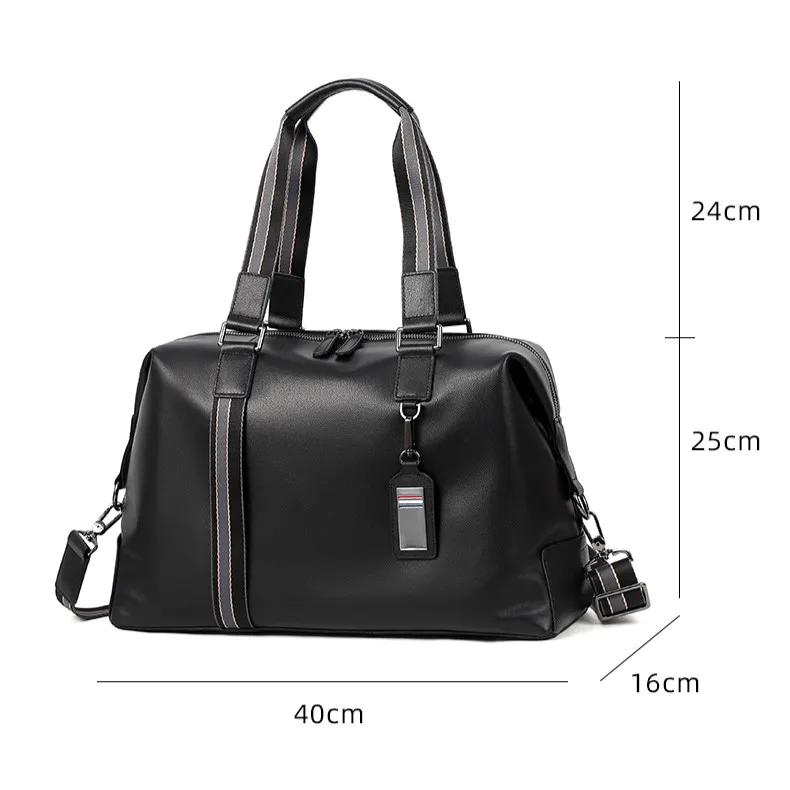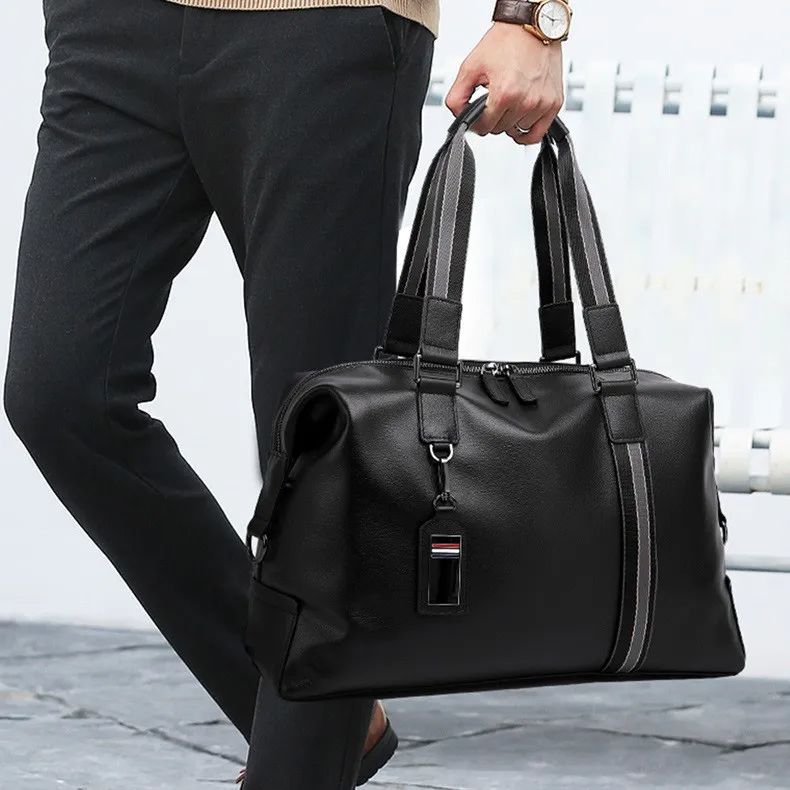 Color: The bag comes in a sophisticated black hue that enhances its elegance.Upper Material: Genuine leather provides a luxurious and resilient exterior.Number of Shoulder Straps: It features a single shoulder strap for comfortable carrying.Opening Method: A zipper closure secures the contents and offers easy access.Hardness: The bag remains soft to the touch, allowing for a comfortable user experience.Shape: This men’s handbag presents a refined and practical design.Pattern: The solid color pattern adds a touch of classic simplicity.Lining Material: The interior boasts a polyester lining that adds both durability and a smooth finish.Features: The bag includes waterproofing, multi-functionality, a 15” computer compartment, a zipper secret pocket, a mobile phone compartment, an ID holder, and a sandwich zipper bag for organized storage.Size: Measuring 15.7” x 9.8” x 16 cm, it offers a compact yet spacious design.Weight: Weighing just 1.07 kg, the bag combines lightweight ease with practical functionality.