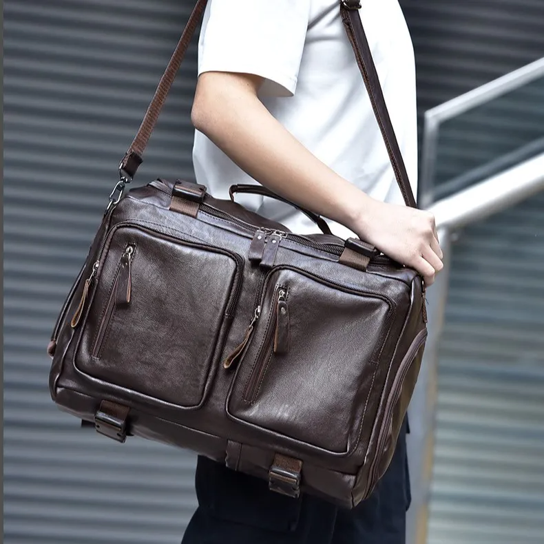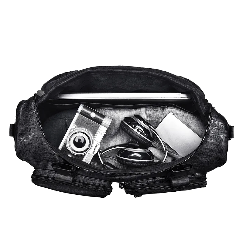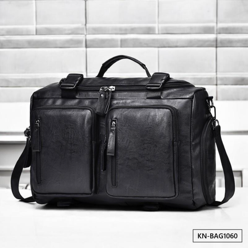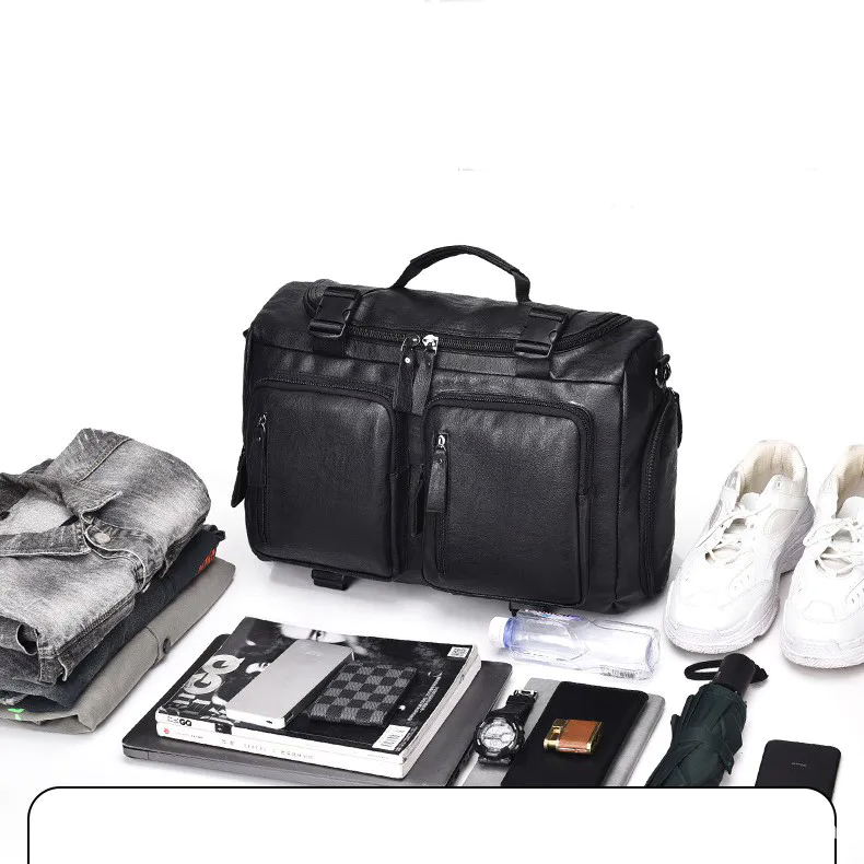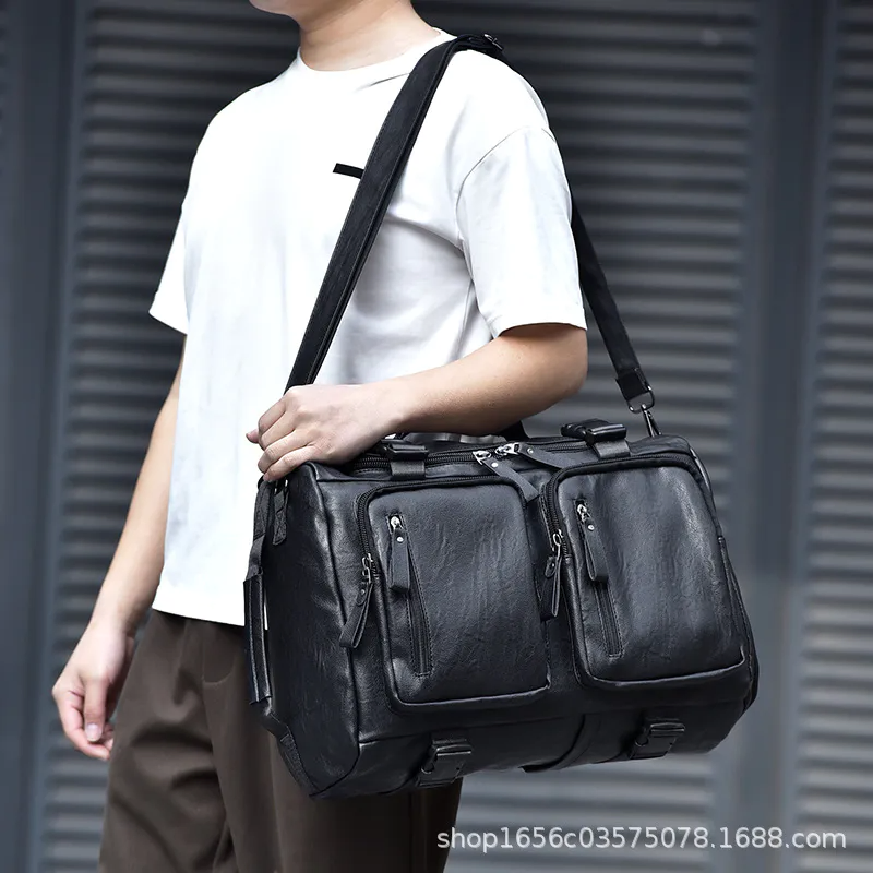 Color: The bag comes in a sleek, classic black.Upper Material: It features a durable PU leather exterior.Number of Shoulder Straps: The bag offers both single and double strap options.Opening Method: It uses a reliable zipper for secure closure.Hardness: The bag maintains a soft and pliable feel.Shape: It is designed as a men’s travel bag.Pattern: The bag displays a simple, solid color.Lining Material: The inside is lined with comfortable polyester cotton.Features: This bag is waterproof, multifunctional, wear-resistant, and fits a 15.6-inch computer.Size: The dimensions are 17.7 inches by 11.8 inches by 5.9 inches.Weight: The bag is lightweight, weighing just 1.1 kilograms.