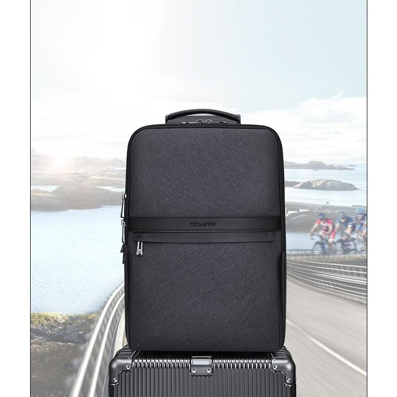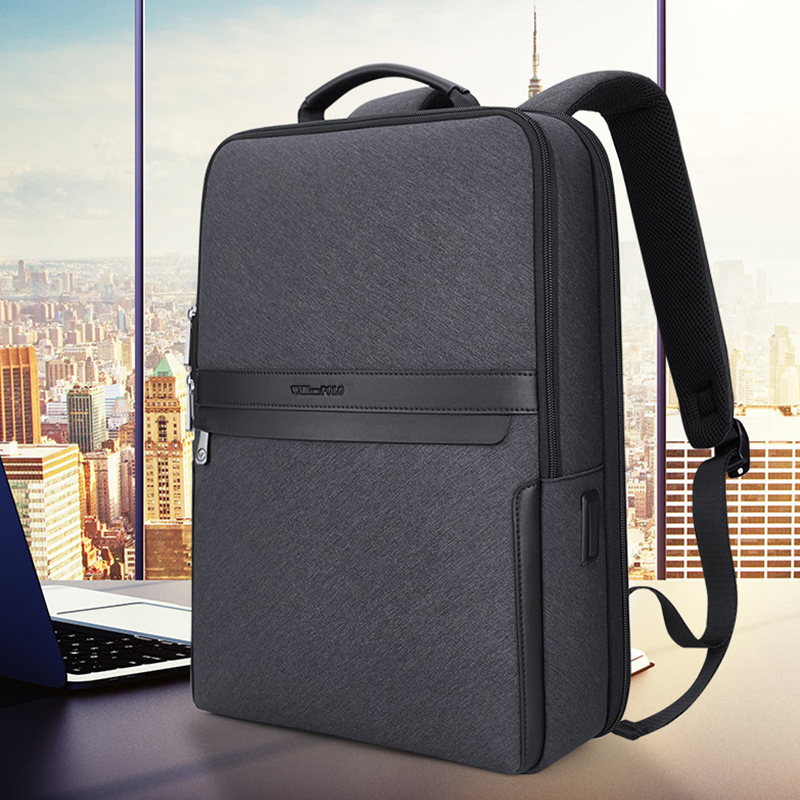Color: This backpack displays a dark gray hue, offering a sleek and understated appearance.Brand: William POLO delivers a blend of style and durability with this high-quality backpack.Upper Material: Oxford cloth composes the exterior, ensuring a strong and resilient surface.Number of Shoulder Straps: The double air cushion straps provide superior comfort and support.Opening Method: A dependable zipper opens and closes securely, giving easy access to your items.Pattern: The solid color pattern adds a timeless and versatile touch to the backpack's design.Lining Material: Polyester lining protects your belongings and enhances the backpack's durability.Features: The backpack offers waterproof, wear-resistant, and shock-resistant properties with multifunctional use.Accommodated Computer Size: It accommodates a 13-inch computer, making it suitable for smaller laptops.Bag Size: With dimensions of 15.94" (H) x 11.41" (L) x 4.72" (W), it provides a compact yet functional space.Weight: Weighing 1 kg, the backpack remains light and easy to carry.