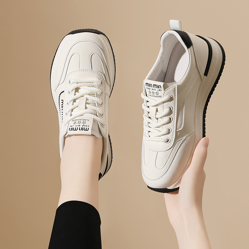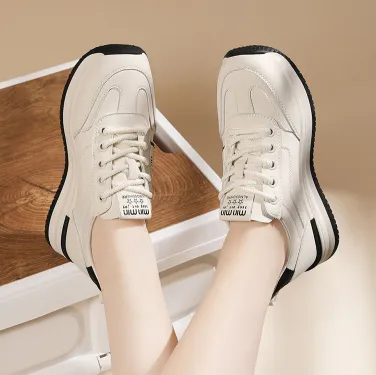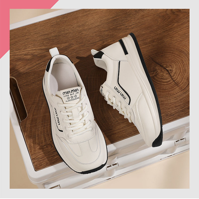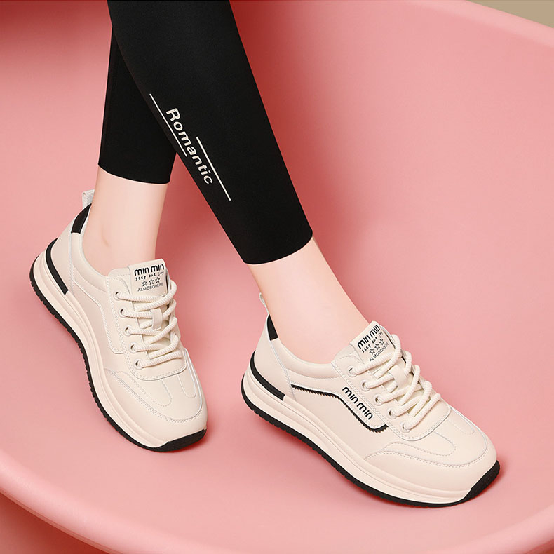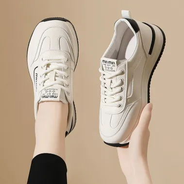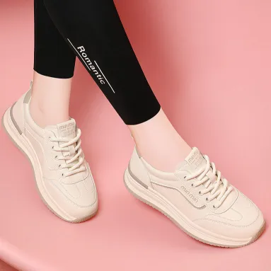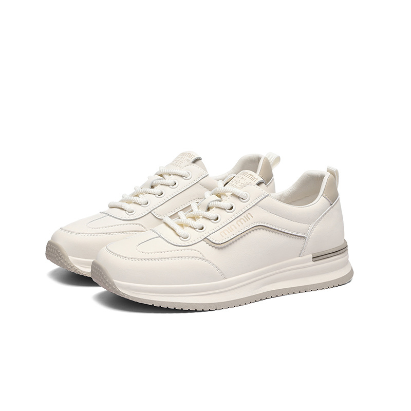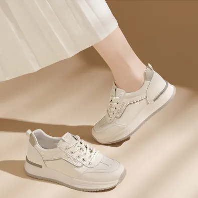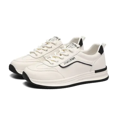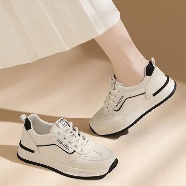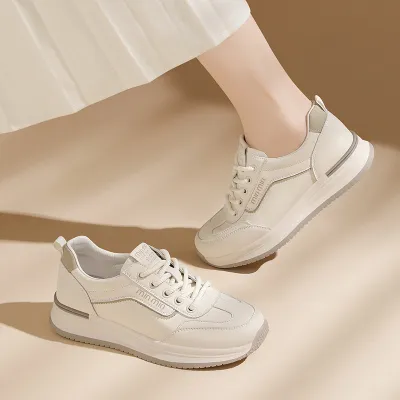 Color: The shoe is available in White & Black and White & Khaki, offering stylish and contrasting color combinations.Upper Material: Genuine c-o-w-h-i-d-e leather constructs the upper, ensuring a premium and durable finish.Outsole Material: The PU rubber combination sole provides flexibility and reliable traction.Insole Material: PU leather lines the insole, enhancing comfort and support.Toe Shape: The round head design allows for a comfortable and spacious fit.Closure Type: Lace-up closures offer a secure and adjustable fit.Pattern Type: The solid pattern delivers a clean and classic appearance.Features: The shoe is breathable, wear-resistant, lightweight, and features anti-slip properties for optimal comfort and stability.