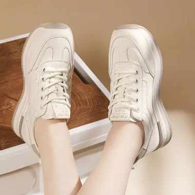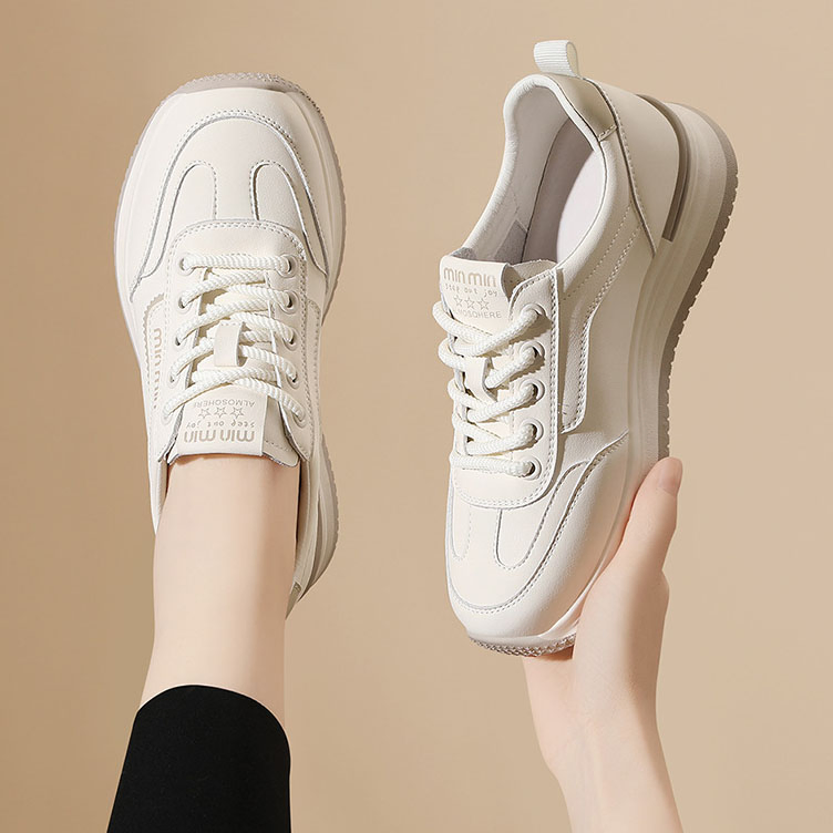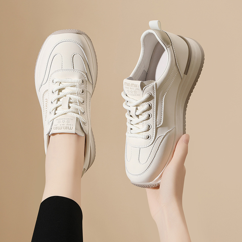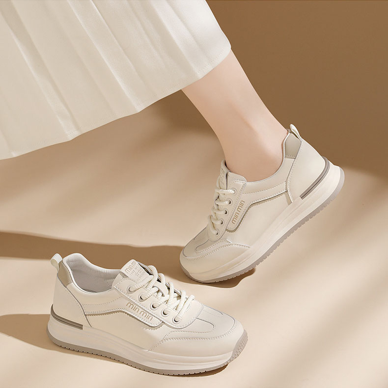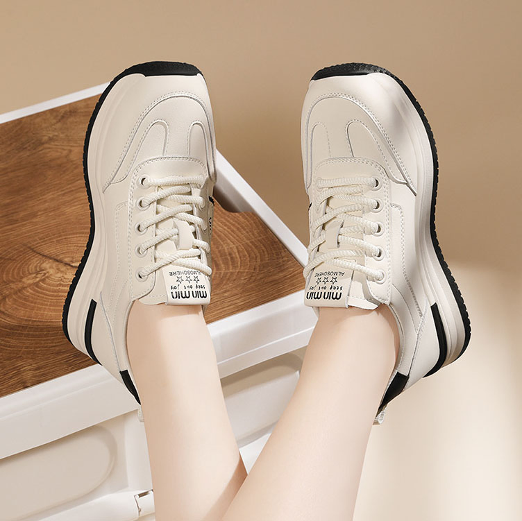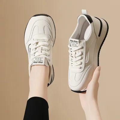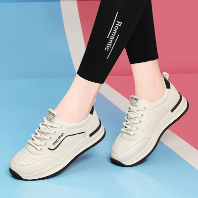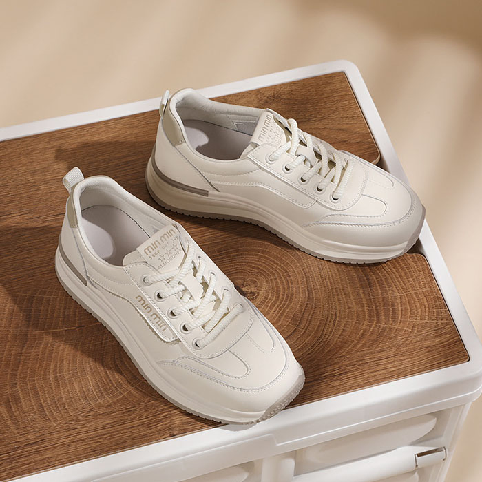 Color: The shoe is available in White & Black and White & Khaki, offering stylish and contrasting color combinations.Upper Material: Genuine c-o-w-h-i-d-e leather constructs the upper, ensuring a premium and durable finish.Outsole Material: The PU rubber combination sole provides flexibility and reliable traction.Insole Material: PU leather lines the insole, enhancing comfort and support.Toe Shape: The round head design allows for a comfortable and spacious fit.Closure Type: Lace-up closures offer a secure and adjustable fit.Pattern Type: The solid pattern delivers a clean and classic appearance.Features: The shoe is breathable, wear-resistant, lightweight, and features anti-slip properties for optimal comfort and stability.