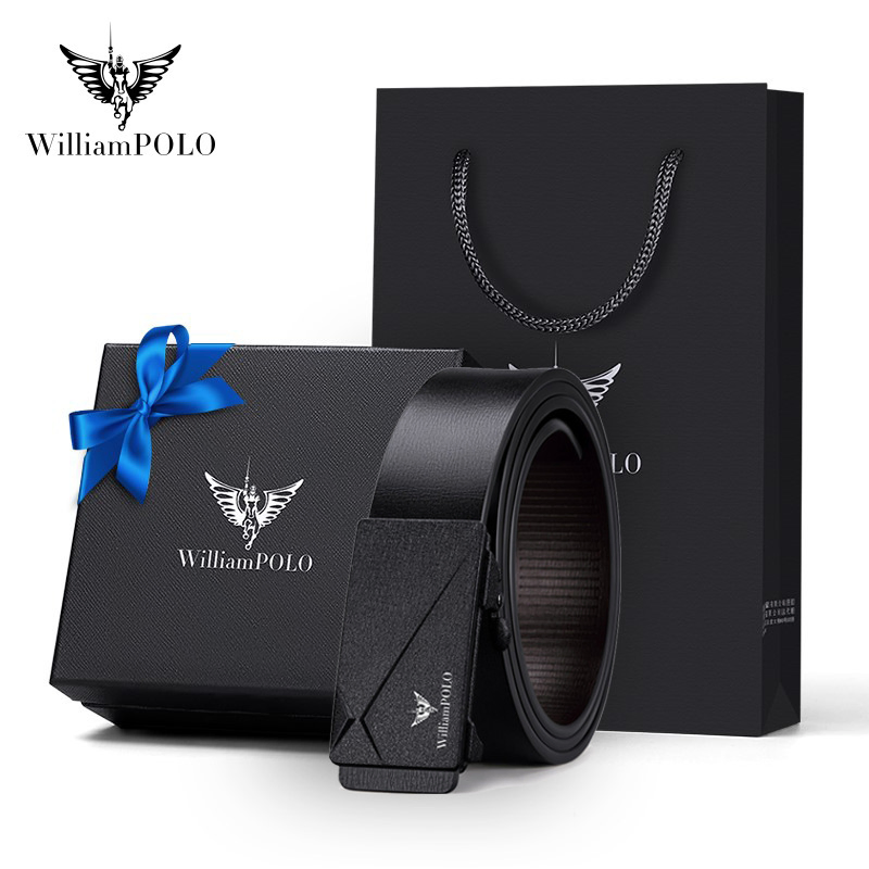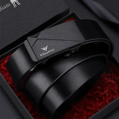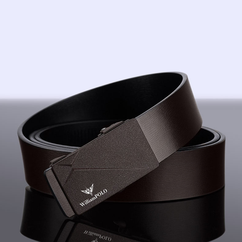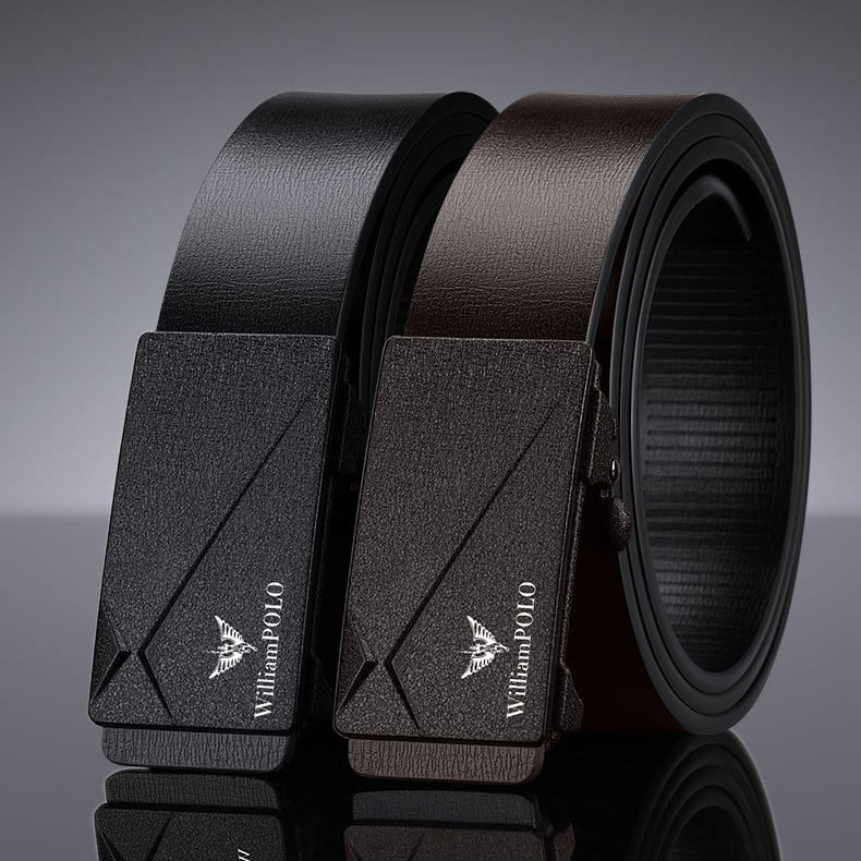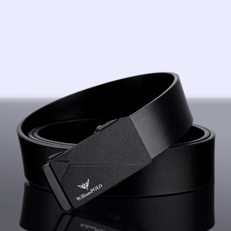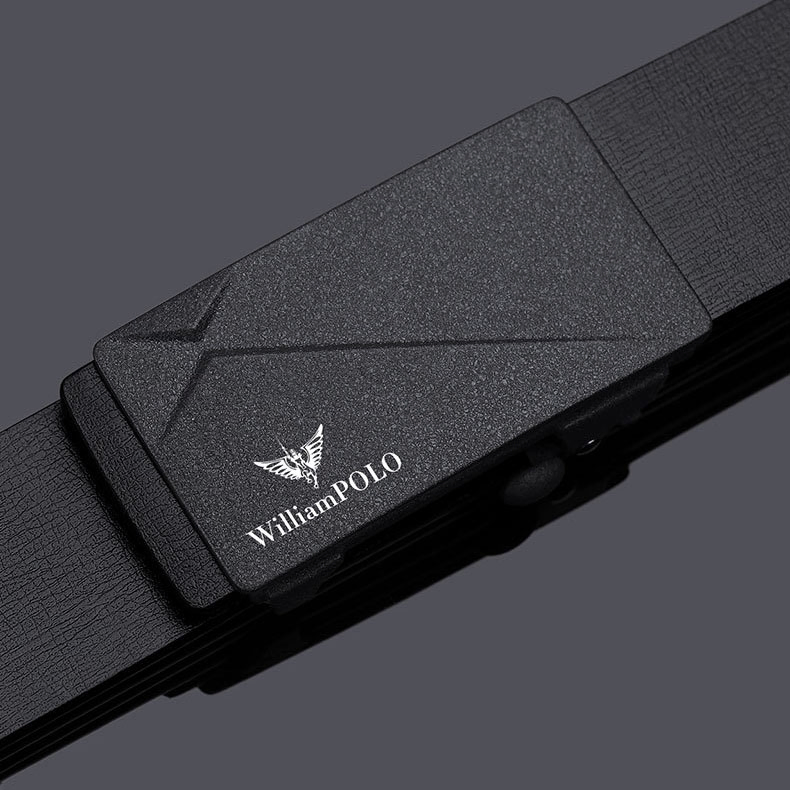 Buckle Color: The buckle features a sophisticated matte black and frosted coffee color combination.Belt Color: The belt is a sleek black, making it a versatile accessory for any wardrobe.Brand: William POLO delivers this belt with a focus on exceptional quality and refined design.Upper Material: Genuine leather provides a luxurious texture and long-lasting durability.Fastening Method: The automatic buckle allows for effortless and secure fastening.Lining: Polyester lining adds both comfort and durability to the belt.Pattern: The belt’s solid color design ensures a clean and classic appearance.Length: At 120 ”, the belt fits a wide range of waist sizes with ease.Width: The belt’s width of 3.8 ” offers a balanced and stylish profile.Weight: The belt weighs 350 grams, delivering a substantial feel while remaining comfortable.