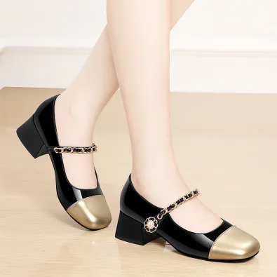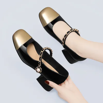 Color Options: Available in meter black and black gold for a striking and sophisticated look.Upper Material: Made from PU leather, offering a sleek and durable finish.Outsole Material: The rubber sole ensures excellent grip and long-lasting wear.Insole Material: PU leather insoles provide plush cushioning and comfort.Toe Shape: The round head toe design delivers a comfortable and classic fit.Closure Type: Velcro closure allows for easy adjustment and secure fastening.Heel Height: The 4 cm heel provides a modest lift while maintaining day-long comfort.Pattern Type: The solid pattern contributes to a clean, timeless style.Additional Features: These sandals are breathable, wear-resistant, lightweight, and feature an anti-slip sole for added safety.