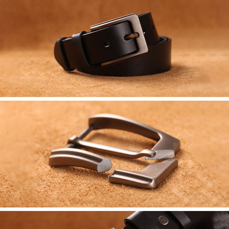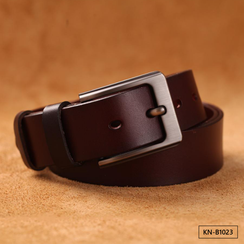 Buckle Color: The belt features a stylish gun-colored buckle.Belt Color: It comes in two versatile shades: black and chocolate.Upper Material: Made from genuine cowhide leather, the belt provides exceptional quality and durability.Fastening Method: The belt fastens securely with a traditional buckle.Lining: The polyester lining ensures both comfort and resilience.Pattern: It displays a solid color pattern for a classic appearance.Length: Measuring 120 ”, the belt offers a flexible and adjustable fit.Width: With a width of 3.8 ”, the belt presents a substantial and balanced look.Weight: Weighing 270 grams, the belt combines a durable feel with comfort.