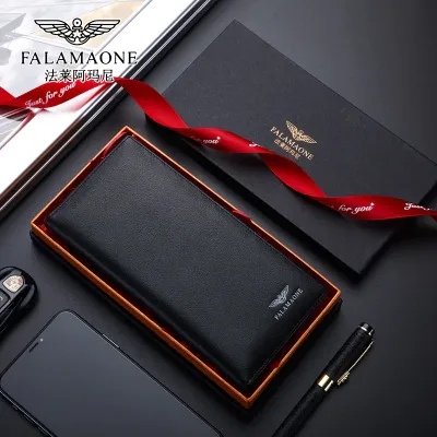 Color: This wallet is available in a sleek black color.Brand: FALAMAONE produces this stylish and practical wallet.Upper Material: Crafted from genuine leather, it ensures durability and a premium feel.Folding: The wallet features a practical 2-fold design for easy use.Lining: Polyester lines the interior, providing a smooth and sturdy finish.Pattern: It showcases a solid color pattern, giving it a classic and versatile look.Length: Measuring 7.28 inches in length, this wallet offers ample space for essentials.Width: At 3.74 inches wide, it comfortably fits in most pockets or bags.