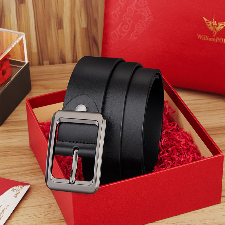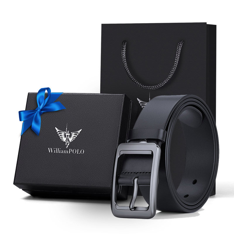 Buckle Color: The buckle combines gunmetal and silver for a sleek and polished finish.Belt Color: The belt features a stylish blend of black and coffee for a rich, versatile look.Brand: William POLO delivers a belt known for its superior craftsmanship and refined design.Upper Material: Genuine leather ensures the belt is both high-quality and durable.Fastening Method: The buckle method provides a classic and secure way to fasten the belt.Lining: Polyester lining offers added comfort and enhances the belt's durability.Pattern: The belt’s solid color provides a simple yet elegant appearance.Length: At 120 ”, the belt accommodates a variety of waist sizes comfortably.Width: With a width of 3.8 ”, the belt maintains a stylish and functional profile.Weight: The belt weighs 350 grams, offering a substantial feel without being overly heavy.