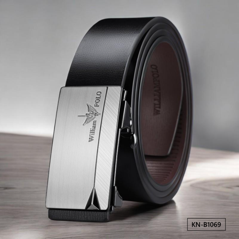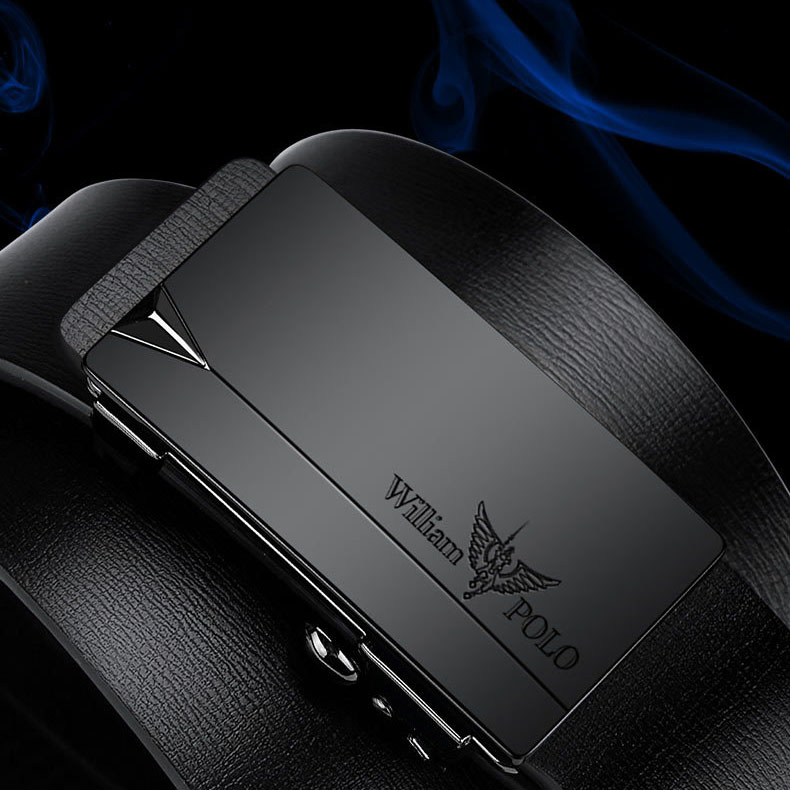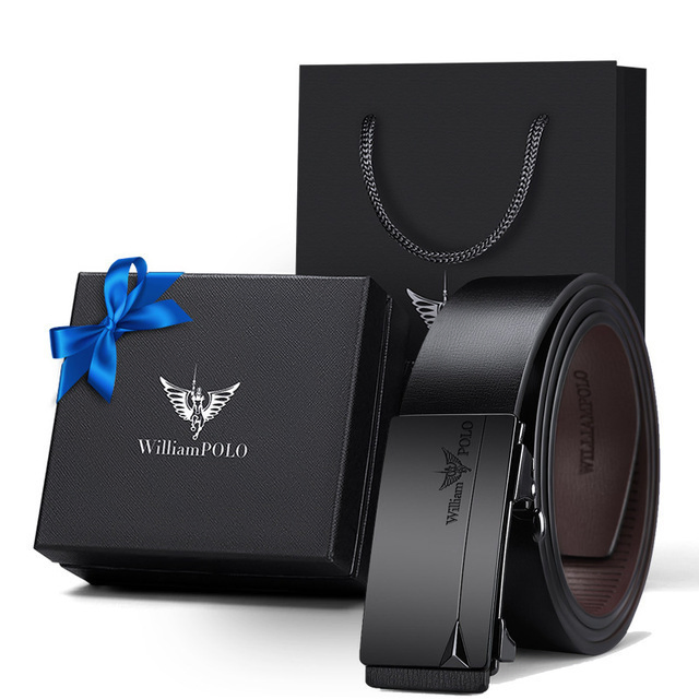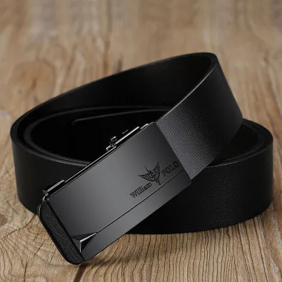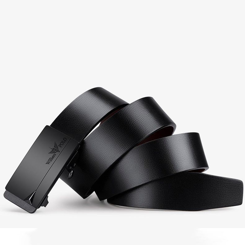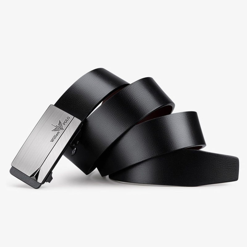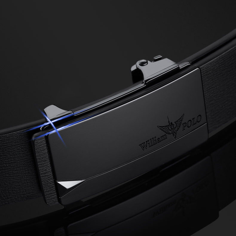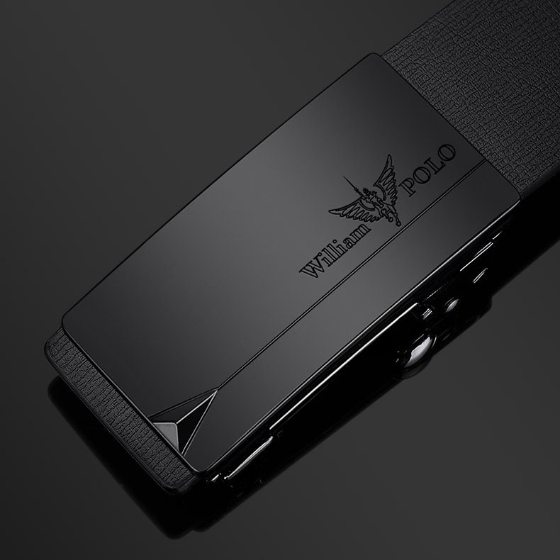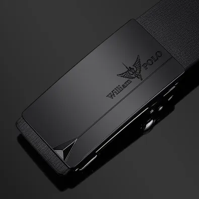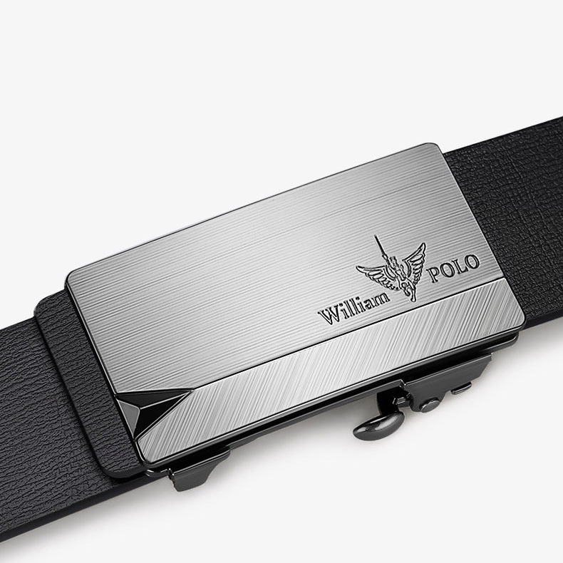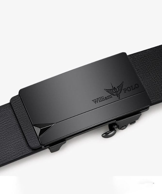 Buckle Color: The buckle combines black and silver hues for a sleek and modern touch.Belt Color: The belt is crafted in a classic black, offering versatility for any wardrobe.Brand: William POLO designs this belt with a focus on both elegance and high-quality materials.Upper Material: Genuine leather provides both a luxurious feel and exceptional durability.Fastening Method: The automatic buckle allows for easy and secure fastening with a contemporary mechanism.Lining: The polyester lining enhances comfort and increases the belt's durability.Pattern: The belt features a solid color pattern, ensuring a timeless and versatile style.Length: With a length of 120 ”, the belt fits a variety of waist sizes comfortably.Width: The belt measures 3.8 ” wide, offering a balanced and stylish look.Weight: Weighing 350 grams, the belt provides a substantial and comfortable fit.