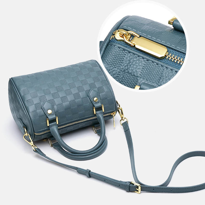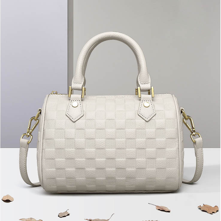 Color: The handbag is available in classic Black, elegant Off White, and delicate Pearl Orchid, offering versatile color options.Upper Material: Crafted from genuine C-o-w-h-i-d-e leather, it provides a luxurious and durable finish.Hardness: The soft hardness ensures a comfortable and flexible structure.Number of Shoulder Straps: It features a single shoulder strap for convenient and stylish carrying.Opening Method: Access your belongings securely with the practical zipper closure.Lining Texture: The interior is lined with PU Leather, adding a smooth and refined touch.Pattern Type: The solid pattern offers a sleek and timeless appearance.Size: Measuring 9.05" (L) x 6.69" (H) x 5.11" (W), this handbag combines a compact design with ample space