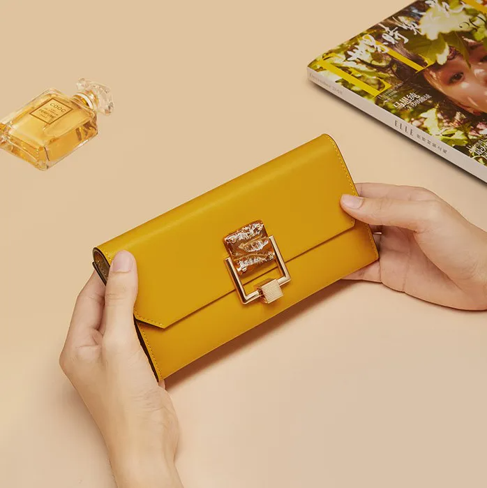 Color: The purse shines in a vibrant yellow, adding a lively and eye-catching touch.Upper Material: Genuine leather covers the surface, delivering a luxurious and durable exterior.Brand: William POLO designs this purse, celebrated for its elegant and high-quality fashion accessories.Cortical Features: The purse includes two layers of C-o-w-h-i-d-e, enhancing its strength and texture.Style: The urban simplicity style offers a clean, contemporary look suitable for modern settings.Pattern Type: The solid pattern contributes to the purse’s sleek and straightforward design.Size: With a length of 20 cm and a width of 12 cm, the purse offers a balanced size for both practicality and style.