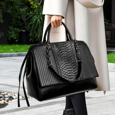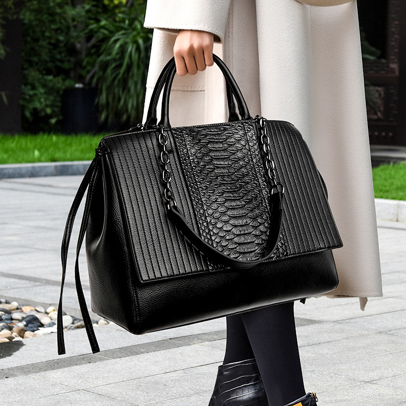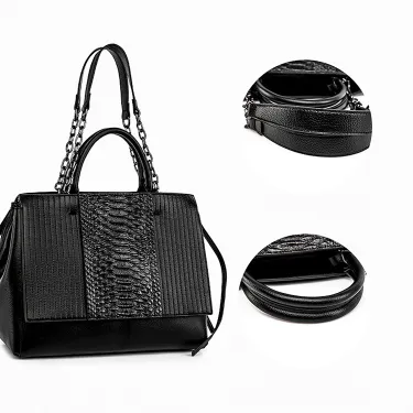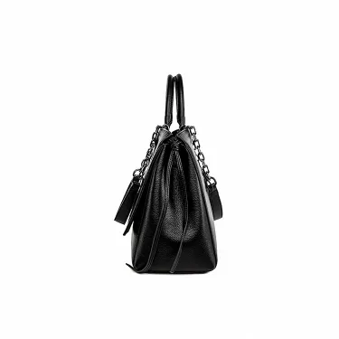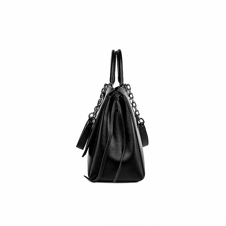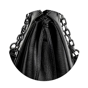 Color: Available in timeless Black for a versatile and elegant style.Upper Material: Crafted from PU leather for a sleek and durable finish.Hardness: The handbag features a soft texture for comfortable use.Number of Shoulder Straps: Includes a single shoulder strap for ease of carrying.Opening Method: Keep your items secure with a practical zipper closure.Lining Texture: The interior is lined with smooth PU leather.Pattern Type: The handbag showcases a classic solid color design.Size: It measures 13.77" in length, 11.02" in height, and 6.69" in width.