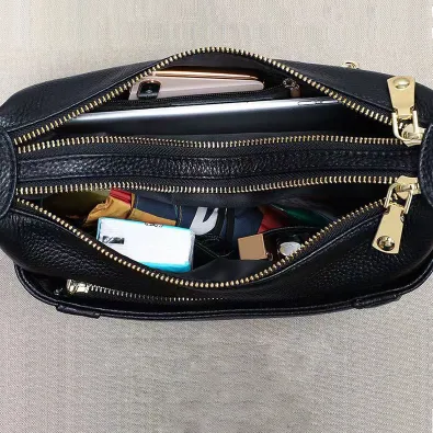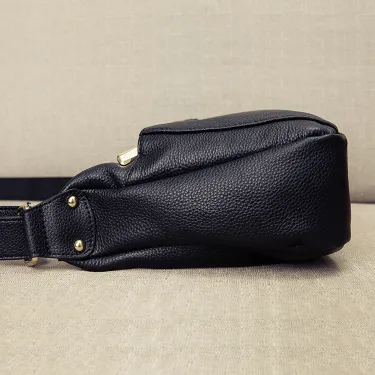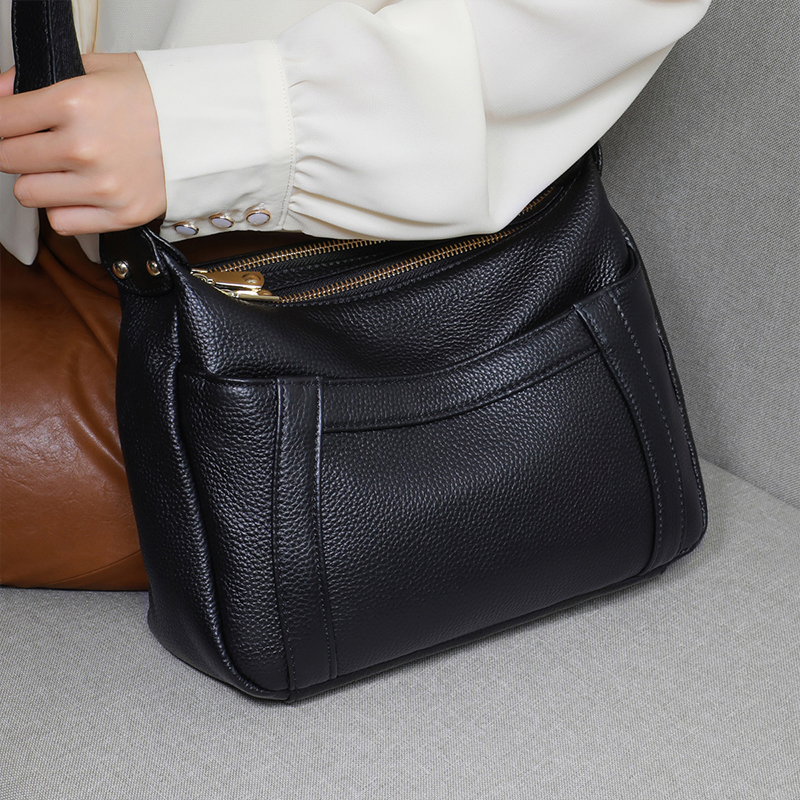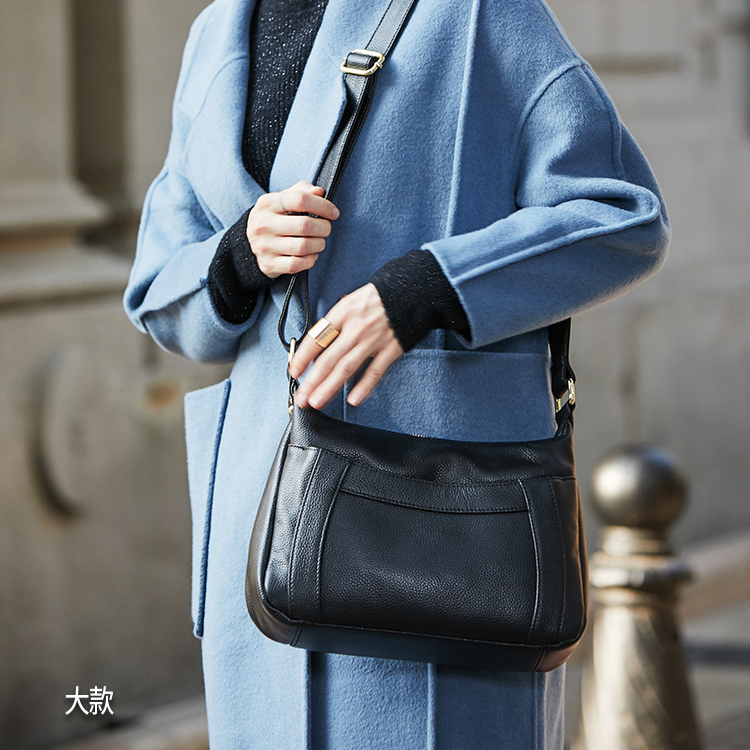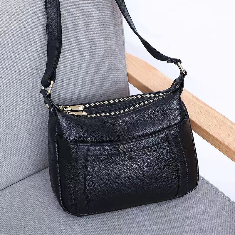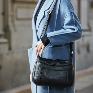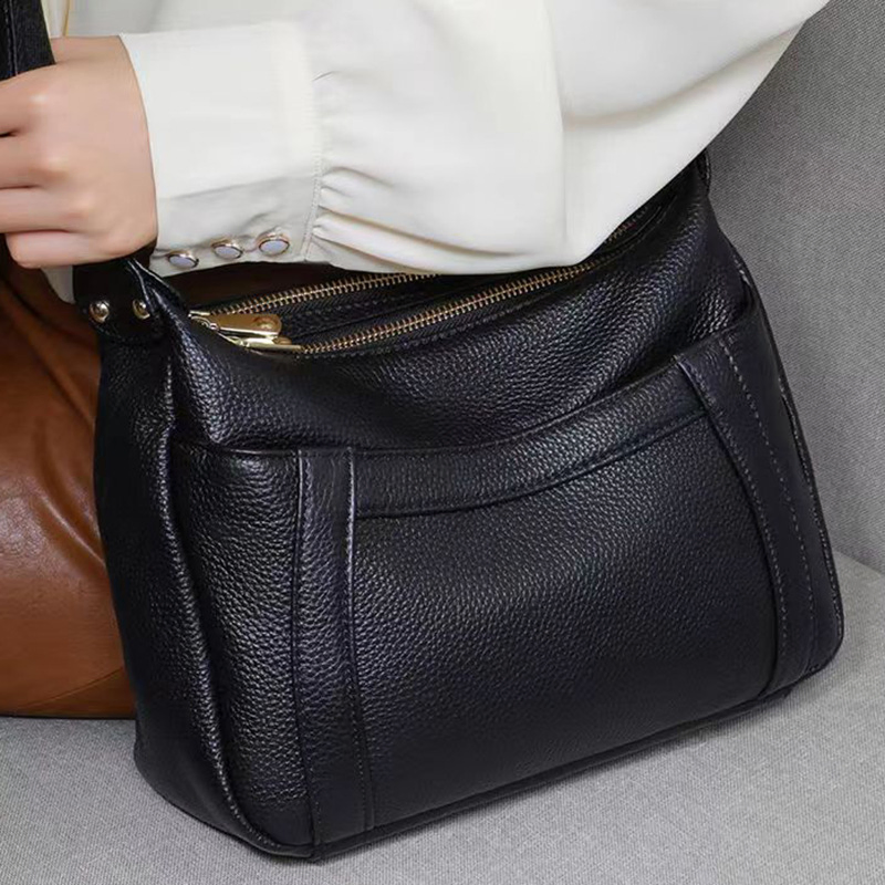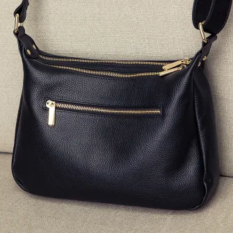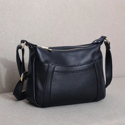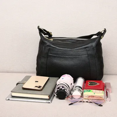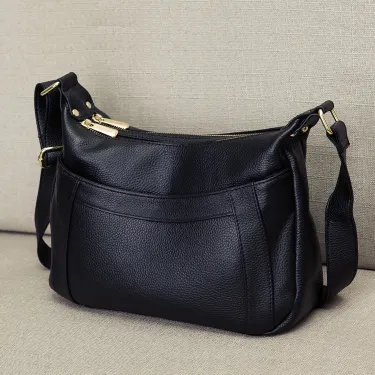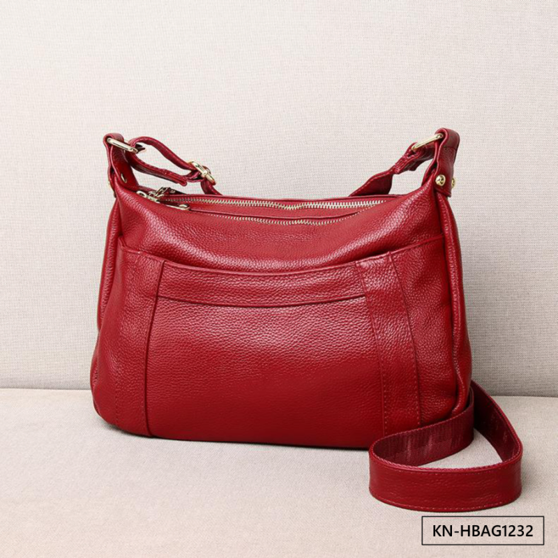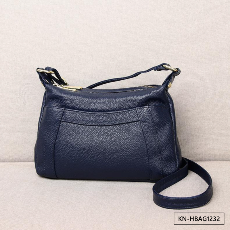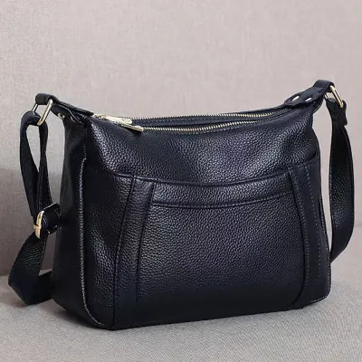 Color: Available in Black, Blue, or Claret for a range of classic and bold options.Upper Material: Made from genuine leather for a luxurious and durable finish.Hardness: The handbag features a soft texture for comfortable use.Number of Shoulder Straps: Includes a single shoulder strap for easy carrying.Opening Method: Keep your items secure with a practical zipper closure.Lining Texture: The interior is lined with smooth PU leather.Pattern Type: The handbag showcases a clean, solid color design.Size: It measures 11.81" in length, 7.48" in height, and 3.93" in width.