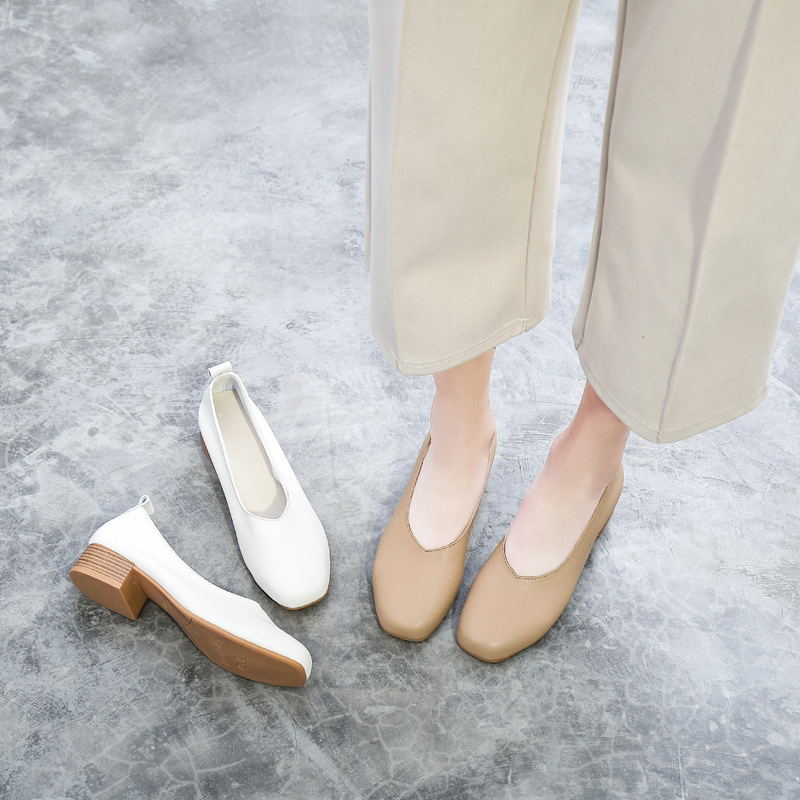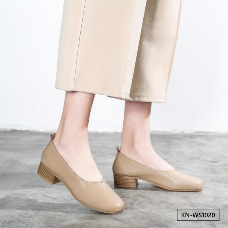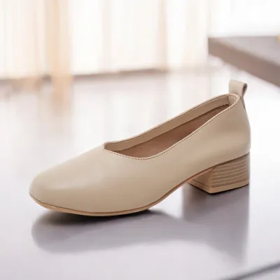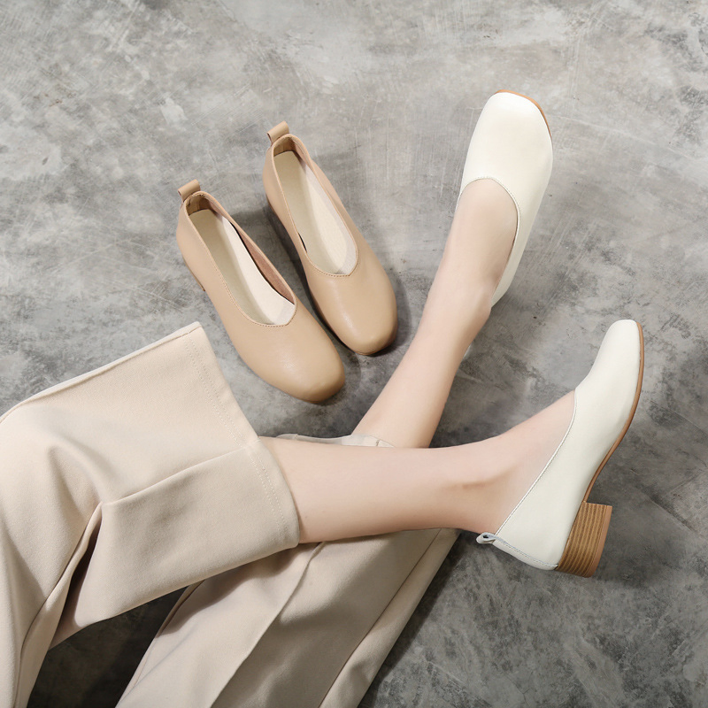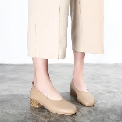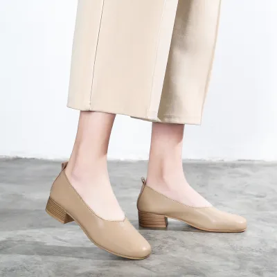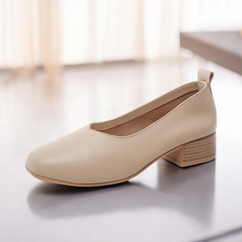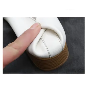Color: The sandal is available in warm apricot and crisp off white.Upper Material: Genuine C-o-w-h-i-d-e leather provides a premium and durable finish.Outsole Material: The rubber sole ensures dependable traction and long-lasting wear.Insole Material: PU leather delivers cushioned comfort for extended use.Toe Shape: The round head toe shape offers a comfortable and accommodating fit.Closure Type: The slip-on design allows for effortless wear and removal.Heel Height: The 3.5 cm heel height provides a modest lift with lasting comfort.Pattern Type: The solid color pattern maintains a sleek and timeless style.Features: The sandal includes breathability, wear-resistance, a lightweight build, and anti-slip properties for both style and function.