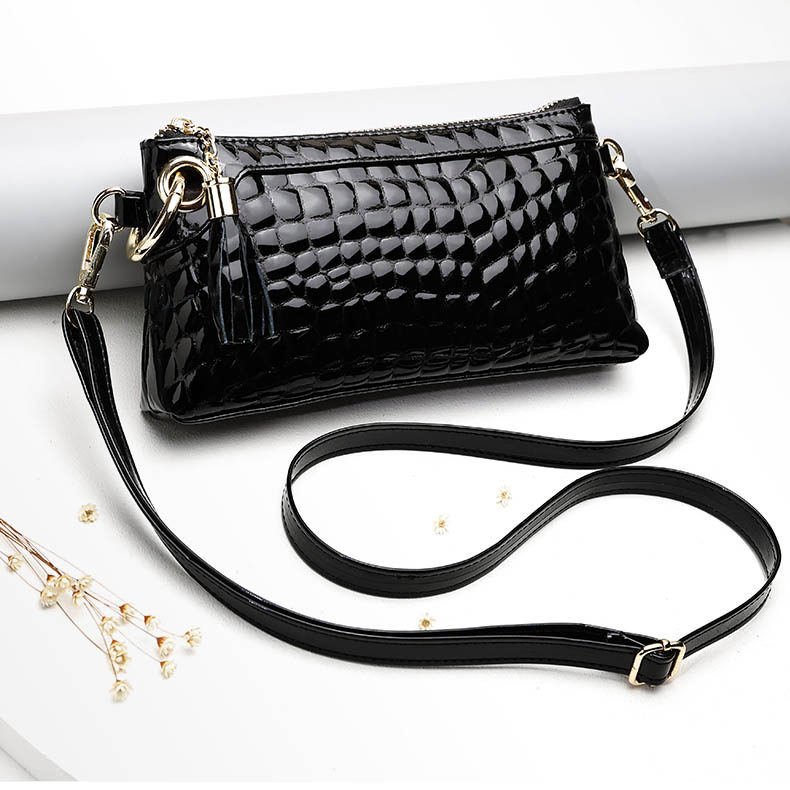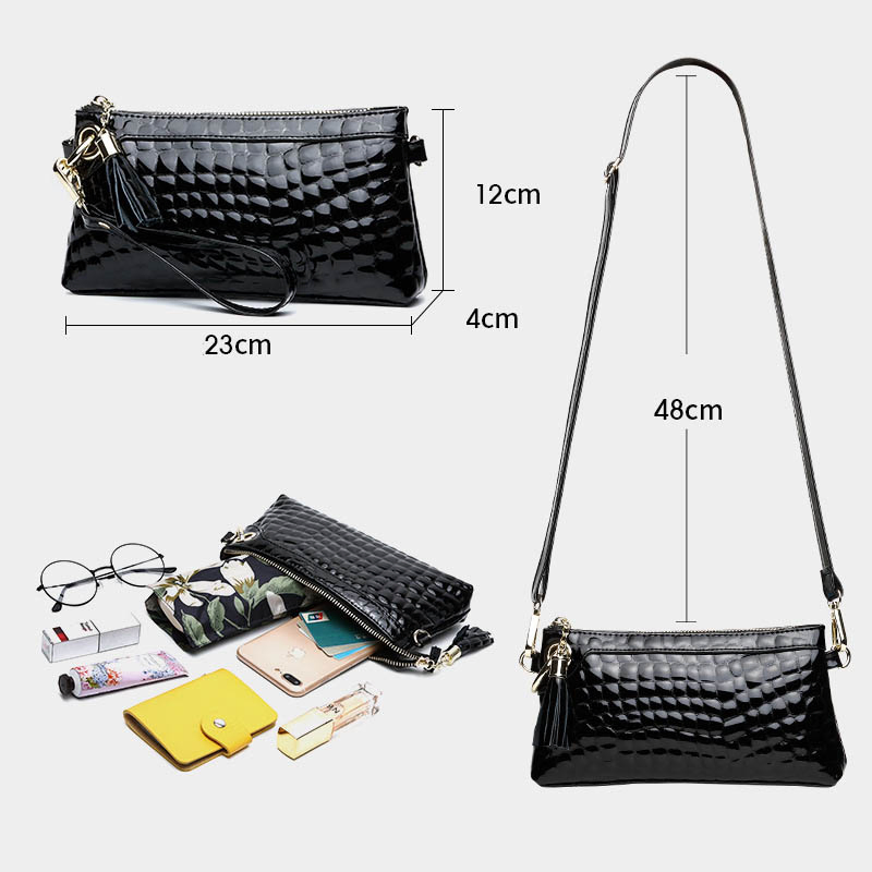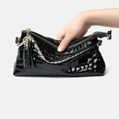 Upper Material: Crafted from genuine C-o-w-h-i-d-e leather, it delivers both durability and a luxurious feel.Hardness: The soft hardness ensures a comfortable and flexible structure.Number of Shoulder Straps: It includes a single shoulder strap for convenient and stylish carrying.Opening Method: Access your belongings securely with the practical zipper closure.Lining Texture: The interior features PU Leather, offering a smooth and refined finish.Pattern Type: The solid pattern maintains a sleek and timeless appearance.Size: Measuring 8.66" (L) x 4.72" (H) x 1.57" (W), this handbag provides a slim and compact design.