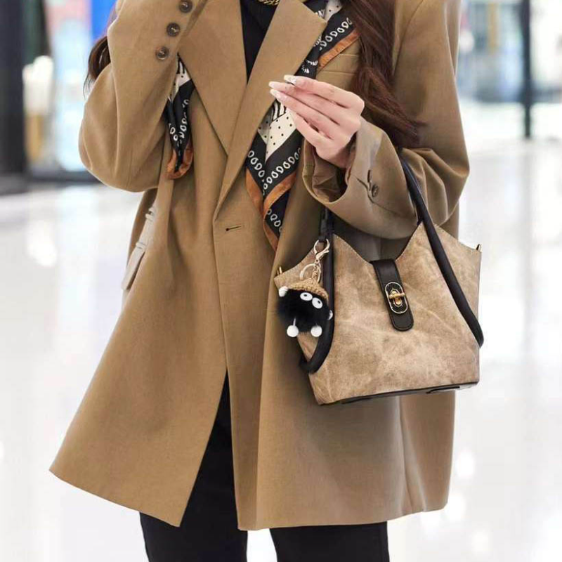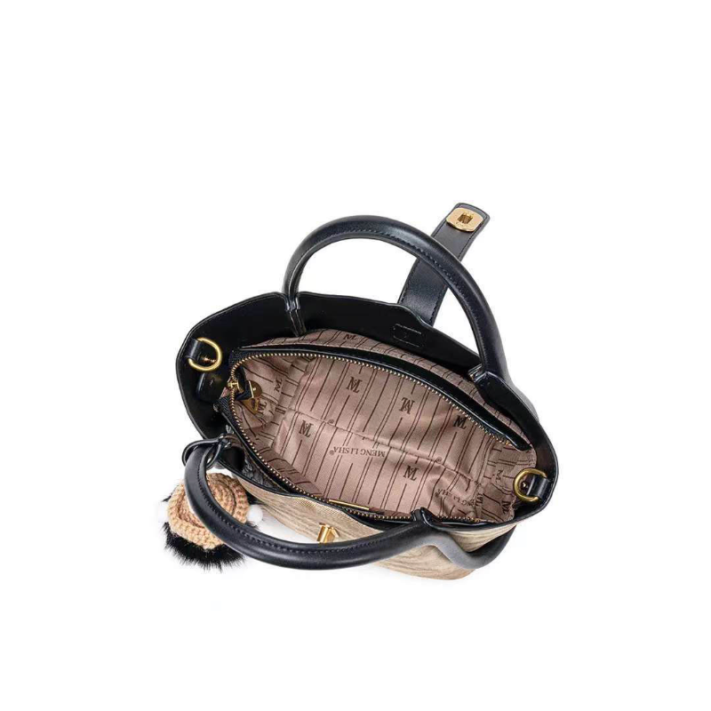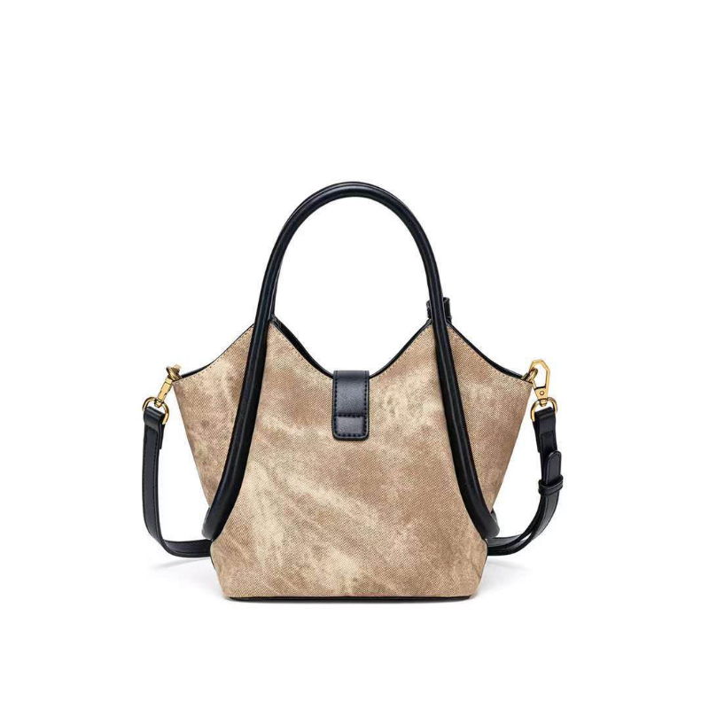 Color: The handbag is available in ink black, providing a sophisticated and timeless look.Upper Material: It is crafted from genuine leather, ensuring a high-quality and durable finish.Hardness: The bag features a soft texture, offering comfort and flexibility.Number of Shoulder Strap: It includes a single shoulder strap for convenient and hands-free carrying.Opening Method: The handbag secures with a lock, offering both security and style.Lining Texture: The interior is lined with PU leather, adding a luxurious and cohesive touch.Pattern Type: It has a solid pattern, contributing to its classic and versatile design.Size: Measuring 7.08 inches in length, 8.26 inches in height, and 5.11 inches in width, the handbag offers a well-proportioned and functional profile.