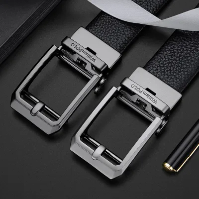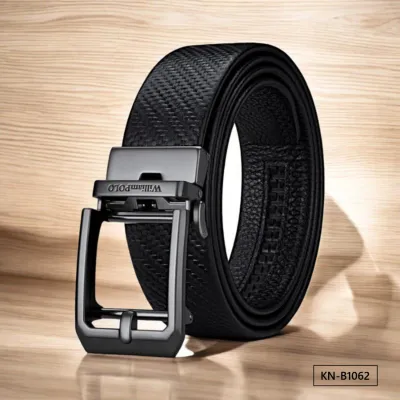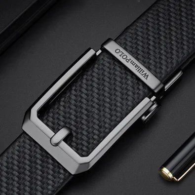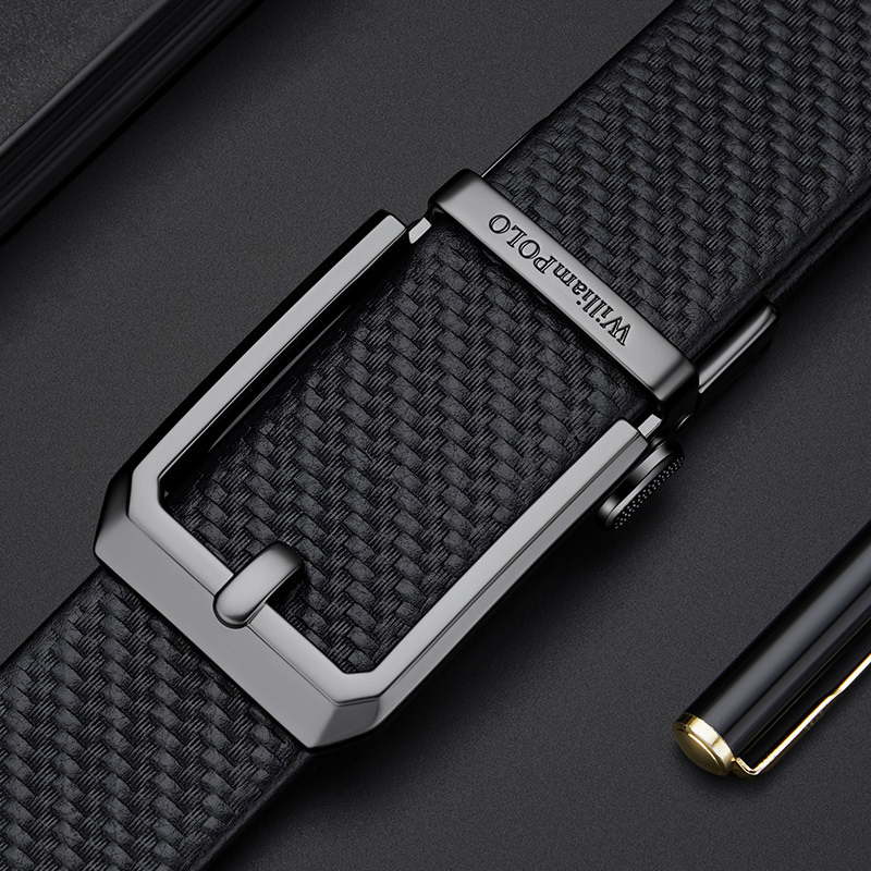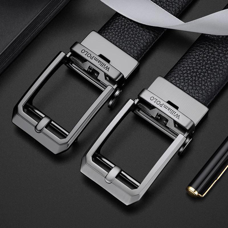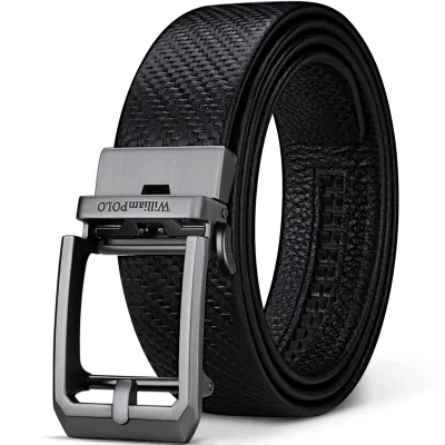 Buckle Color: The buckle features a sleek combination of gunmetal and silver for a sophisticated look.Belt Color: The belt is designed in a classic black, perfect for any outfit.Brand: William POLO produces this belt with a focus on high-quality materials and stylish design.Upper Material: Genuine leather provides the belt with both elegance and durability.Fastening Method: The automatic buckle ensures a quick and secure fastening experience.Lining: The polyester lining offers added comfort and longevity to the belt.Pattern: The belt showcases a solid color for a timeless and versatile appearance.Length: Measuring 120 ”, the belt accommodates a range of waist sizes comfortably.Width: The belt’s 3.8 ” width provides a balanced and refined profile.Weight: Weighing 350 grams, the belt combines substantial presence with ease of wear.