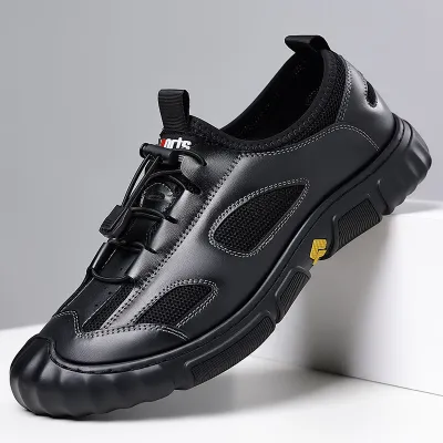 Color: The shoe comes in classic black and rich brown, offering versatile and sophisticated color choices.Upper Material: Combining microfiber leather with mesh material, the shoe's upper ensures durability and enhanced breathability.Outsole Material: A rubber sole provides reliable traction and flexibility for comfortable daily wear.Insole Material: The shoe features a PU leather insole, offering cushioned support and comfort.Toe Shape: Designed with a round head toe shape, the shoe maximizes toe space and comfort.Closure Type: It slips on effortlessly, ensuring quick and convenient wear.Pattern Type: The shoe displays a solid pattern, emphasizing its sleek and modern aesthetic.Features: Engineered to be breathable, wear-resistant, lightweight, and equipped with anti-slip properties, making it suitable for various activities.