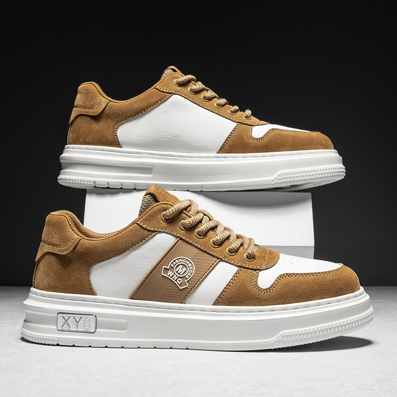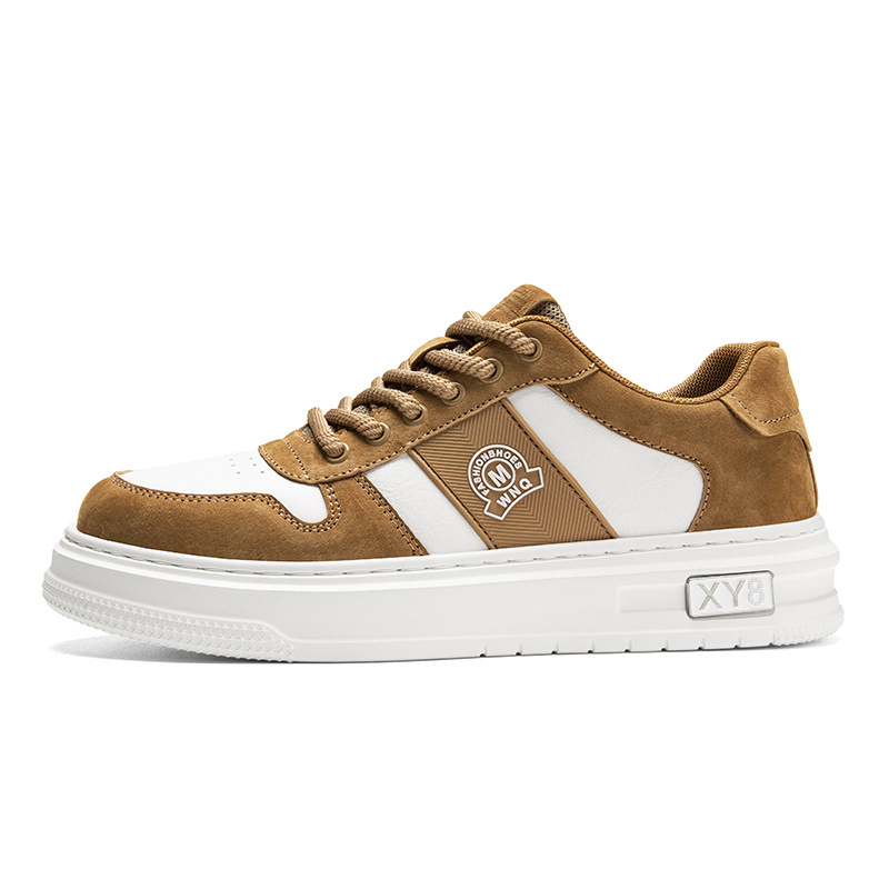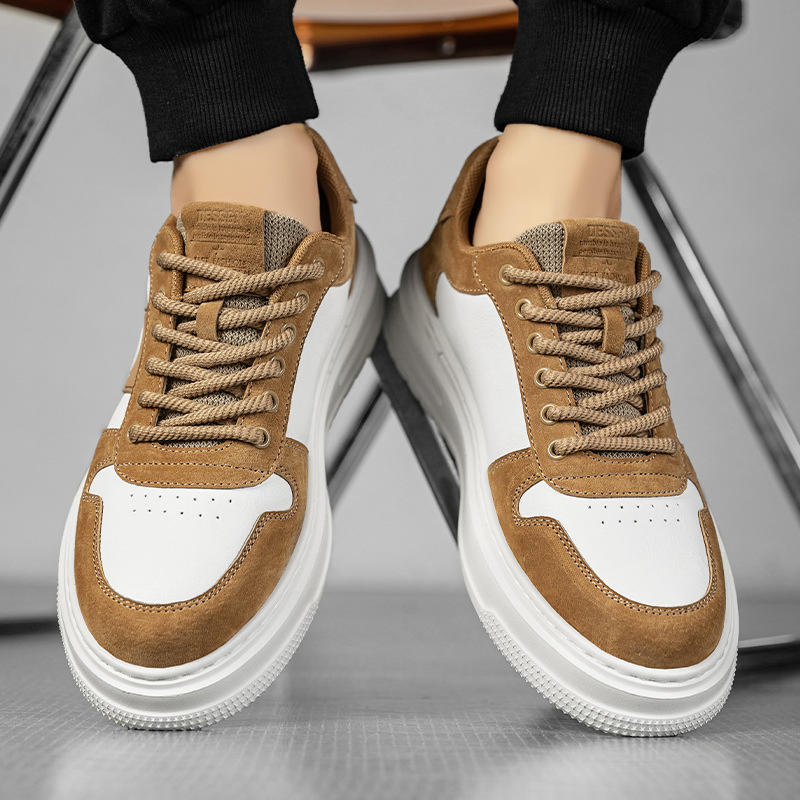 Color: White BrownUpper Material: Genuine LeatherOutsole Material: Rubber SoleInsole Material: PU LeatherToe Shape: Round HeadClosure Type: Lace UpPattern Type: SolidFeatures: Breathable, wear-resistant, lightweight, anti slip