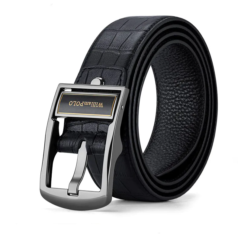 Buckle Color: The buckle displays a modern gunmetal finish.Belt Color: The belt comes in a versatile black color.Brand: William Polo is the designer of this belt.Upper Material: The belt is crafted from high-quality genuine leather.Fastening Method: A classic buckle fastens the belt securely.Lining: The belt has a comfortable polyester lining.Pattern: The belt features a simple, solid color.Length: The belt measures an ample 120 ”.Width: The belt offers a width of 3.7 ”.Weight: The belt remains lightweight at just 350 grams.