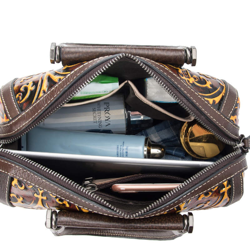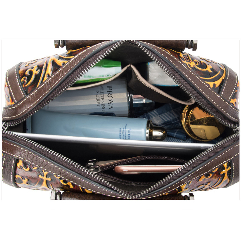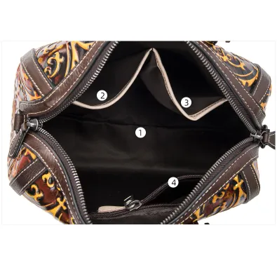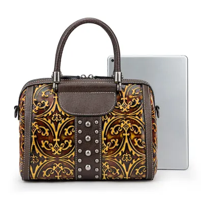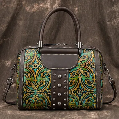 Color: Offered in Retro Green, Retro Purple, and Retro Red Brown to bring a touch of vintage charm.Upper Material: Made from Genuine Leather (C-o-w-h-i-d-e) for a luxurious and long-lasting finish.Hardness: Crafted with a soft hardness for a comfortable and flexible feel.Number of Shoulder Straps: Includes a single shoulder strap for easy and convenient carrying.Opening Method: Secured with a zipper for reliable and straightforward access.Lining Texture: Features PU Leather lining for a smooth and refined interior.Pattern Type: Displays a solid pattern for a classic and elegant appearance.Size: Measures 10.43" (L) x 7.40" (H) x 5.51" (W) for ample storage space.