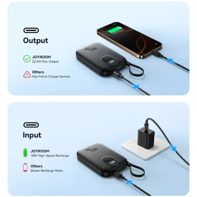 Output Power: USB-A (22.5W max), USB-C (20W max), Lightning cable (22.5W max).