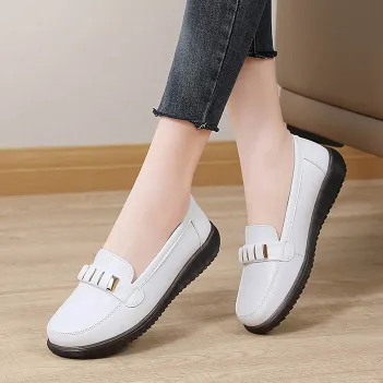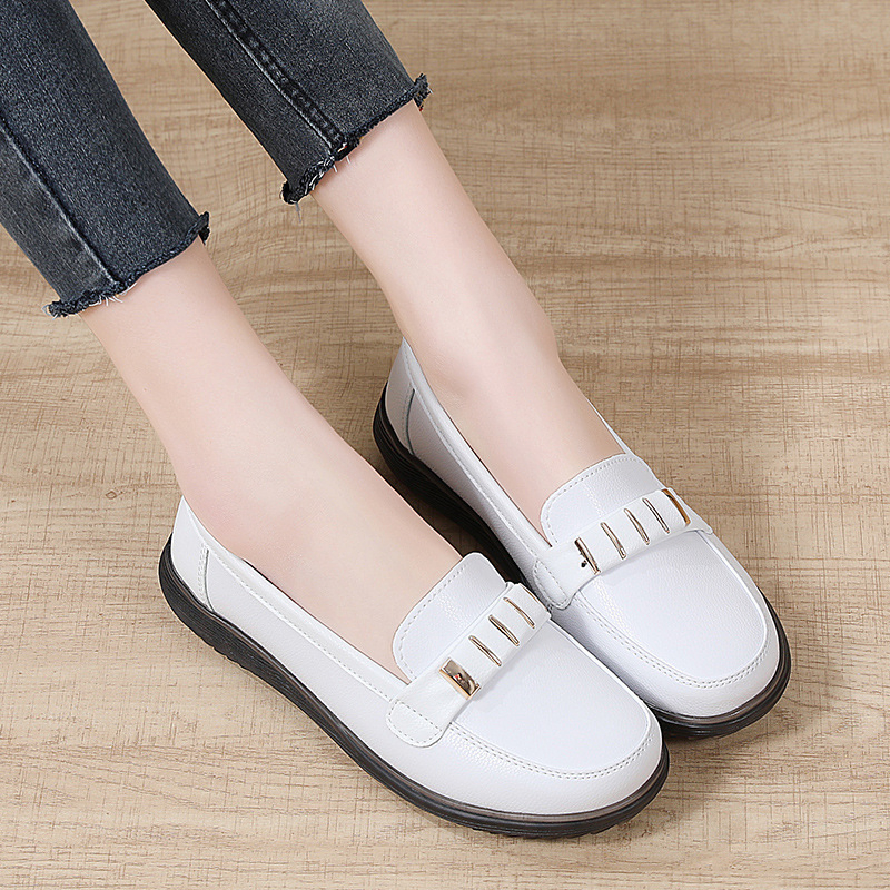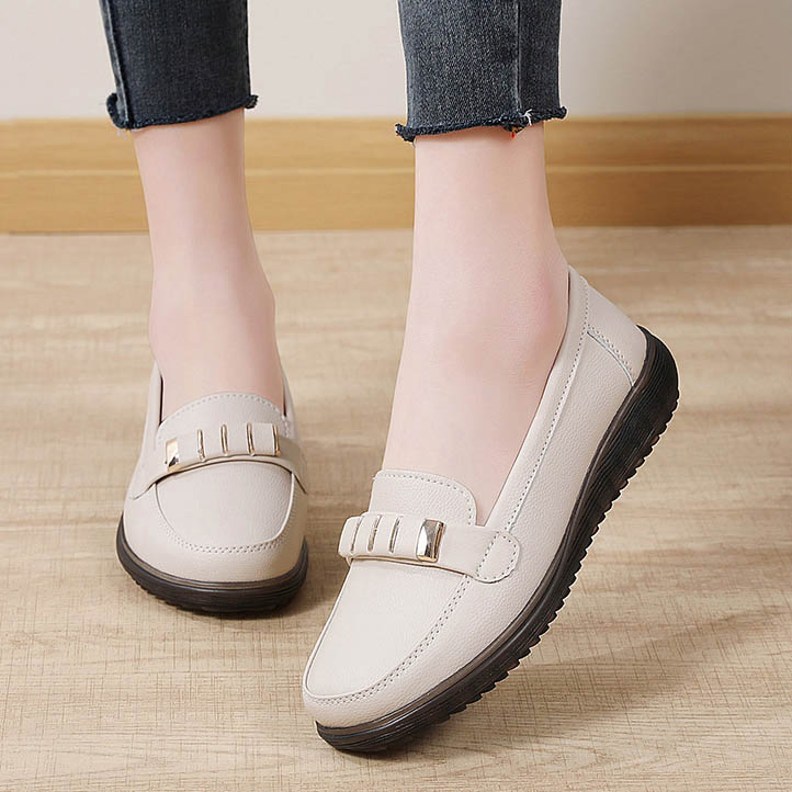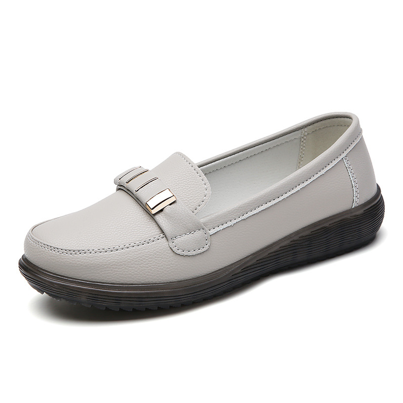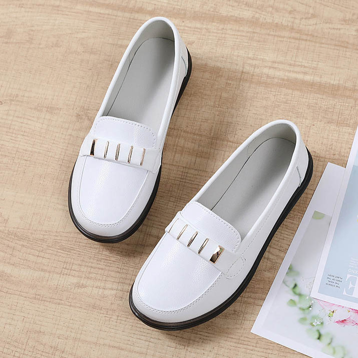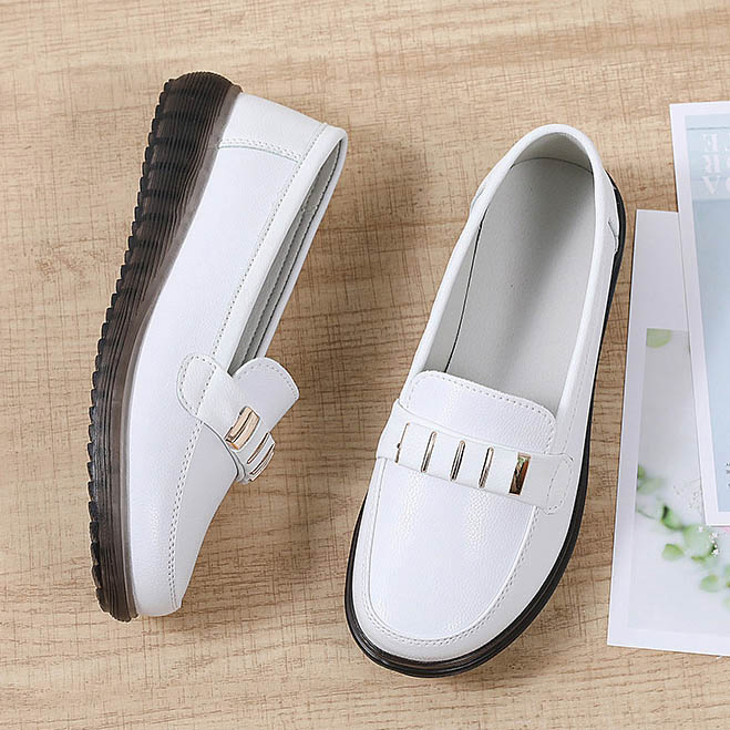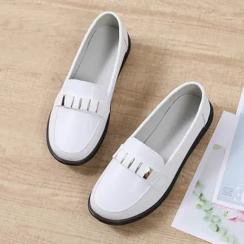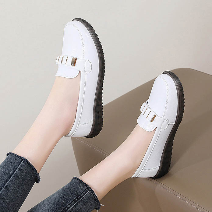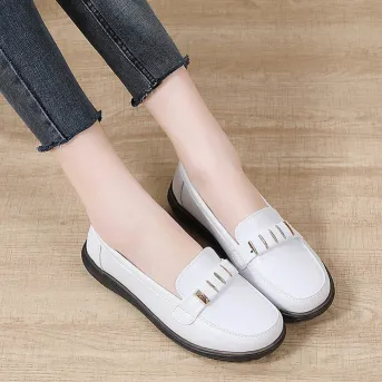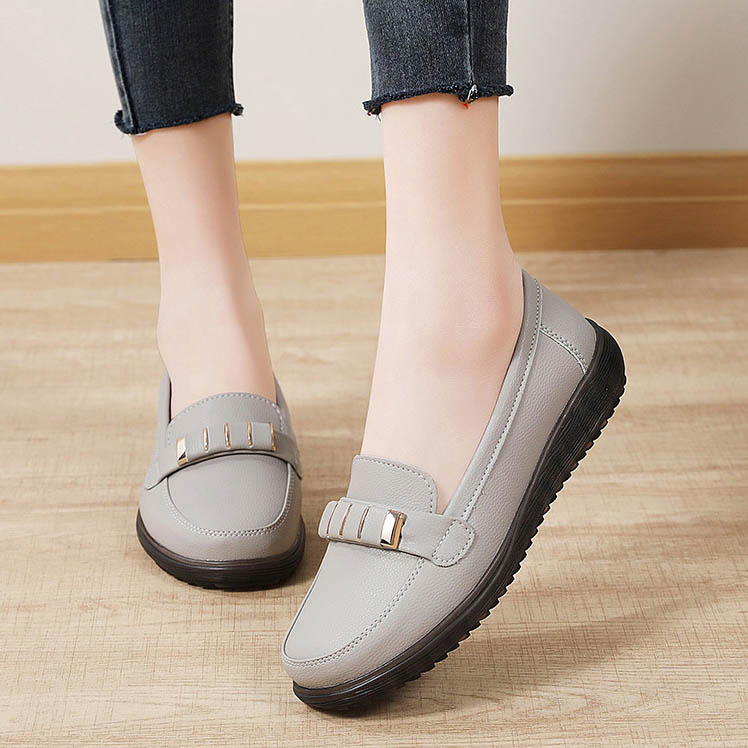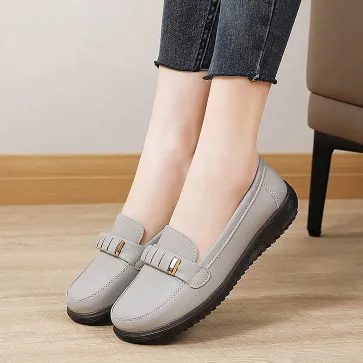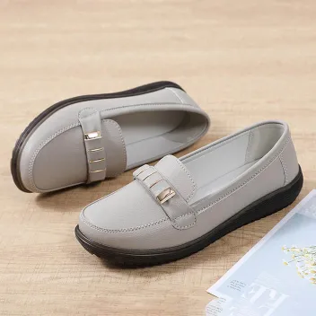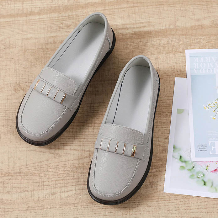 Color: The shoe is available in Bean Paste Color, Beige, Black, Gray, and White, offering a diverse selection of stylish and neutral hues.Upper Material: PU leather forms the upper, providing a sleek and durable surface.Outsole Material: The TPR sole ensures a flexible and grippy foundation.Insole Material: PU leather lines the insole, enhancing comfort and cushioning.Toe Shape: The round head design allows for a comfortable and spacious fit.Closure Type: The slip-on style offers effortless and convenient wear.Pattern Type: The solid pattern provides a classic and streamlined appearance.Features: The shoe is breathable, wear-resistant, lightweight, and features anti-slip properties for superior comfort and stability.