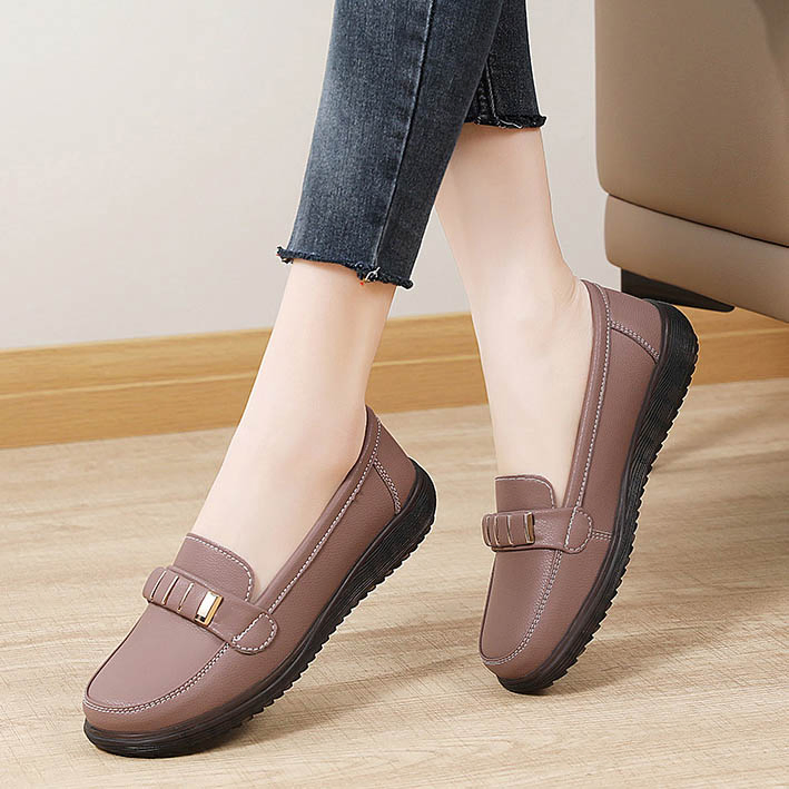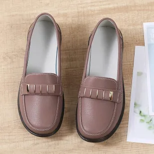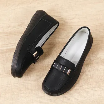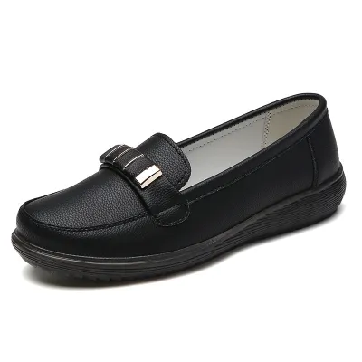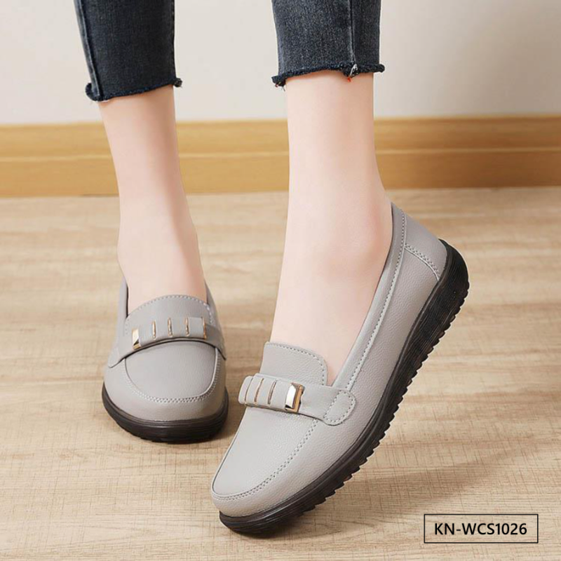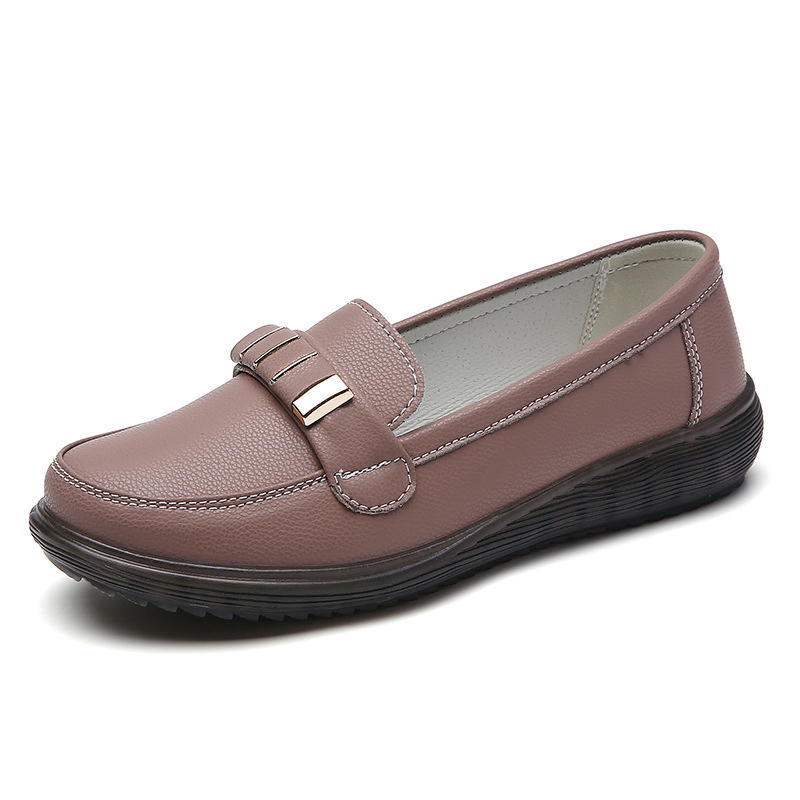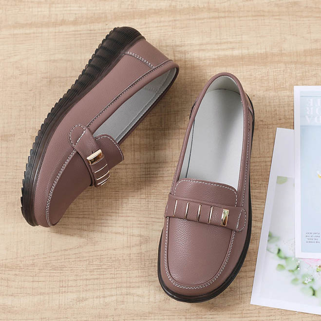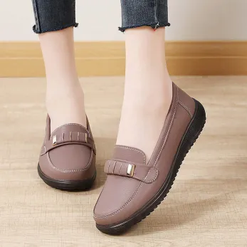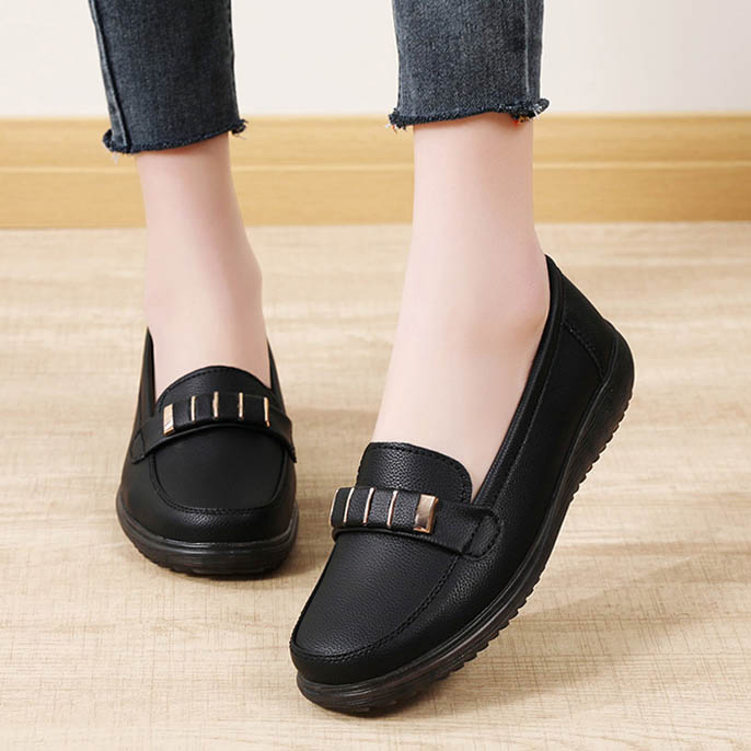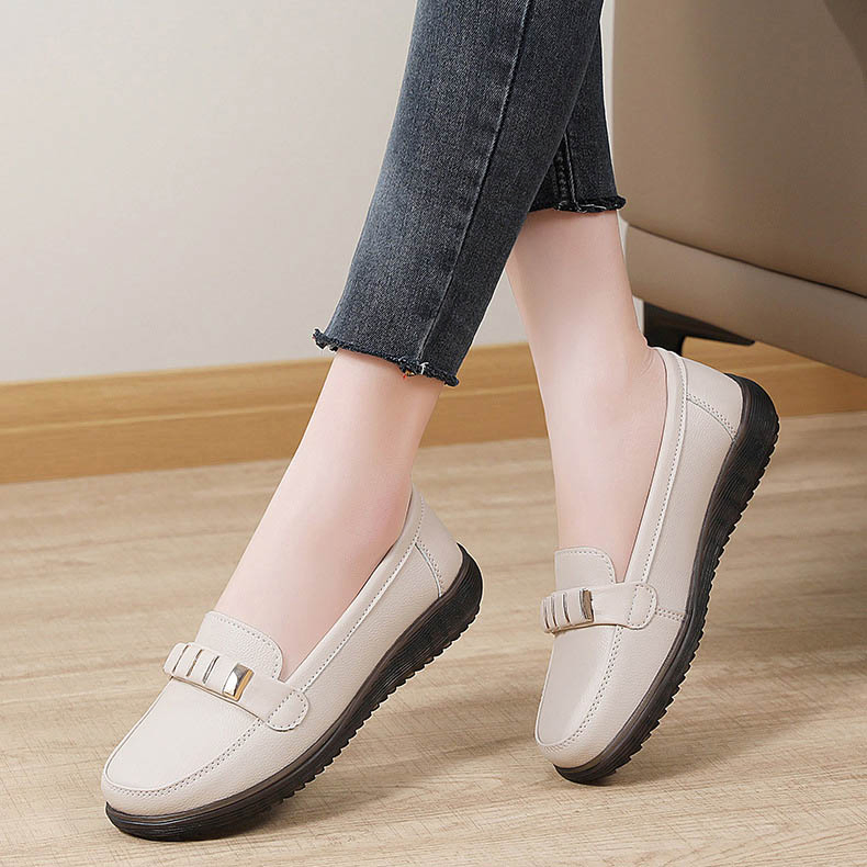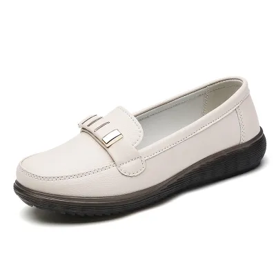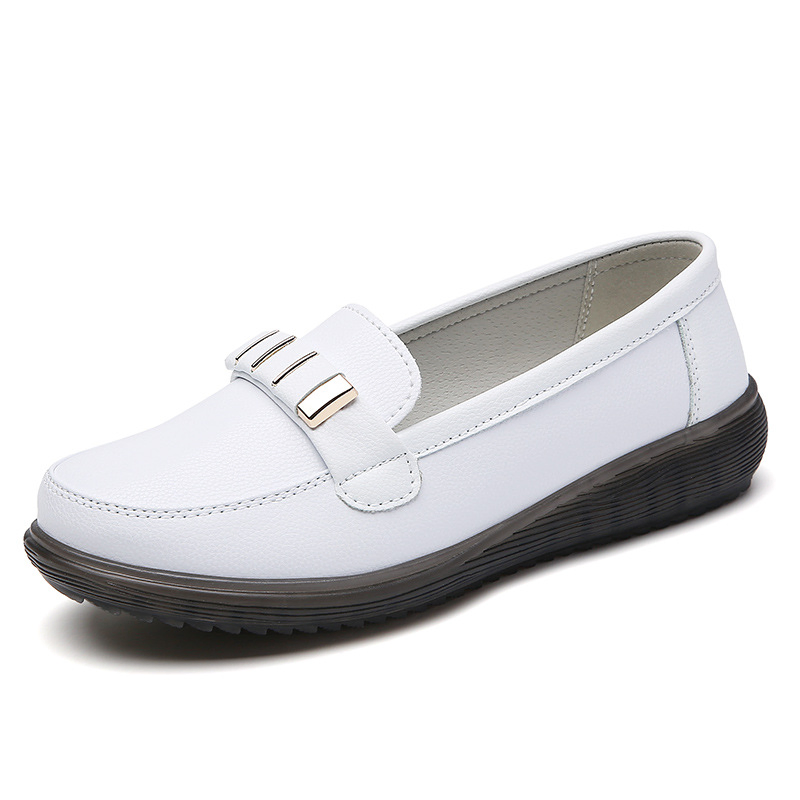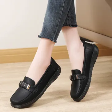 Color: The shoe is available in Bean Paste Color, Beige, Black, Gray, and White, offering a diverse selection of stylish and neutral hues.Upper Material: PU leather forms the upper, providing a sleek and durable surface.Outsole Material: The TPR sole ensures a flexible and grippy foundation.Insole Material: PU leather lines the insole, enhancing comfort and cushioning.Toe Shape: The round head design allows for a comfortable and spacious fit.Closure Type: The slip-on style offers effortless and convenient wear.Pattern Type: The solid pattern provides a classic and streamlined appearance.Features: The shoe is breathable, wear-resistant, lightweight, and features anti-slip properties for superior comfort and stability.