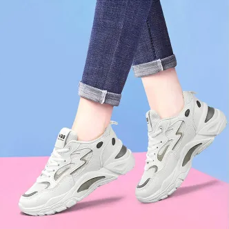Color: The shoe comes in Rice Flour and White, providing a fresh and neutral color palette.Upper Material: PU leather and mesh material construct the upper, blending durability with breathability.Outsole Material: Rubber forms the outsole, ensuring reliable grip and long-lasting wear.Insole Material: PU leather cushions the insole, offering comfort and support.Toe Shape: The round head shape accommodates your toes comfortably.Closure Type: Lace-up closures secure the shoe with an adjustable fit.Pattern Type: The solid pattern offers a sleek and versatile appearance.Features: The shoe features breathable fabric, wear-resistant construction, a lightweight feel, and anti-slip properties for enhanced performance.