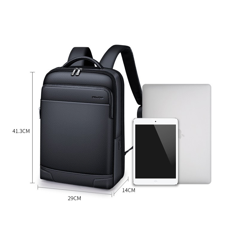 Color: This backpack features a classic black color, ensuring a versatile and timeless look.Brand: William POLO delivers a blend of sophistication and practicality with this backpack.Upper Material: The genuine leather upper provides a luxurious and durable finish.Number of Shoulder Straps: The double air cushion straps enhance comfort and support during use.Opening Method: The zipper opening allows for easy and secure access to your belongings.Pattern: The solid color pattern contributes to a sleek and elegant appearance.Lining Material: The polyester lining adds a layer of protection and ensures the backpack's durability.Features: This backpack boasts waterproof, wear-resistant, and shock-resistant properties while offering multifunctional use.Accommodated Computer Size: It accommodates a 15.6-inch computer, making it suitable for most laptops.Bag Size: With dimensions of 16.25" (H) x 11.41" (L) x 5.51" (W), the backpack provides ample space for your essentials.Weight: Weighing only 1 kg, the backpack is light yet robust, perfect for everyday use.