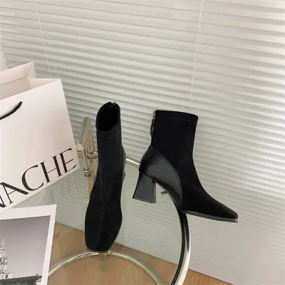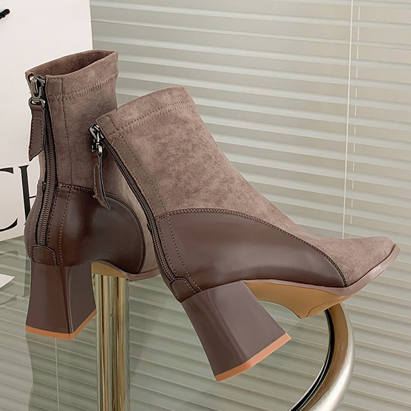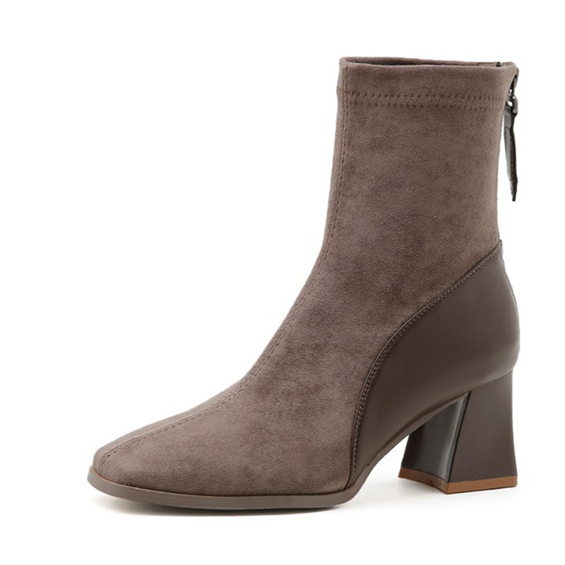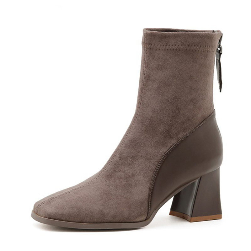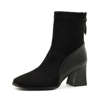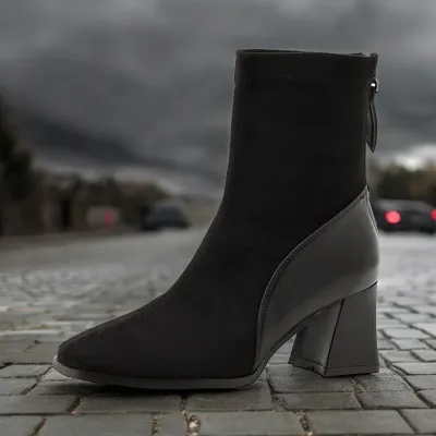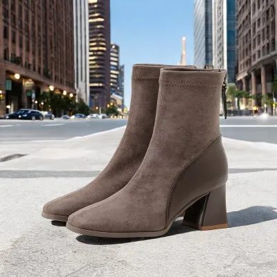 Color: The boot is available in Black and Brown, offering two classic shades that enhance any wardrobe.Upper Material: The microfiber leather upper delivers a modern and durable finish, providing both style and longevity.Outsole Material: The rubber sole provides dependable grip and flexibility, ensuring stability with every step.Insole Material: The PU Leather insole supplies cushioned comfort and support, making the boot comfortable for extended wear.Toe Shape: The square head toe shape creates a contemporary and distinctive look while allowing for a comfortable fit.Closure Type: The back zipper makes it easy to put on and take off the boot, offering a secure and adjustable fit.Pattern Type: The solid pattern presents a clean and versatile design that fits various styles and occasions.Features: Designed to be breathable, wear-resistant, lightweight, and anti-slip, this boot blends practicality with all-day comfort.