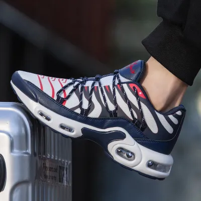 Color: Black & White, Blue, Blue & WhiteUpper Material: PU Leather + Mesh FabricsOutsole Material: Rubber SoleInsole Material: PU LeatherToe Shape: Round HeadClosure Type: Lace UpPattern Type: SolidFeatures: Breathable, wear-resistant, lightweight, anti slip