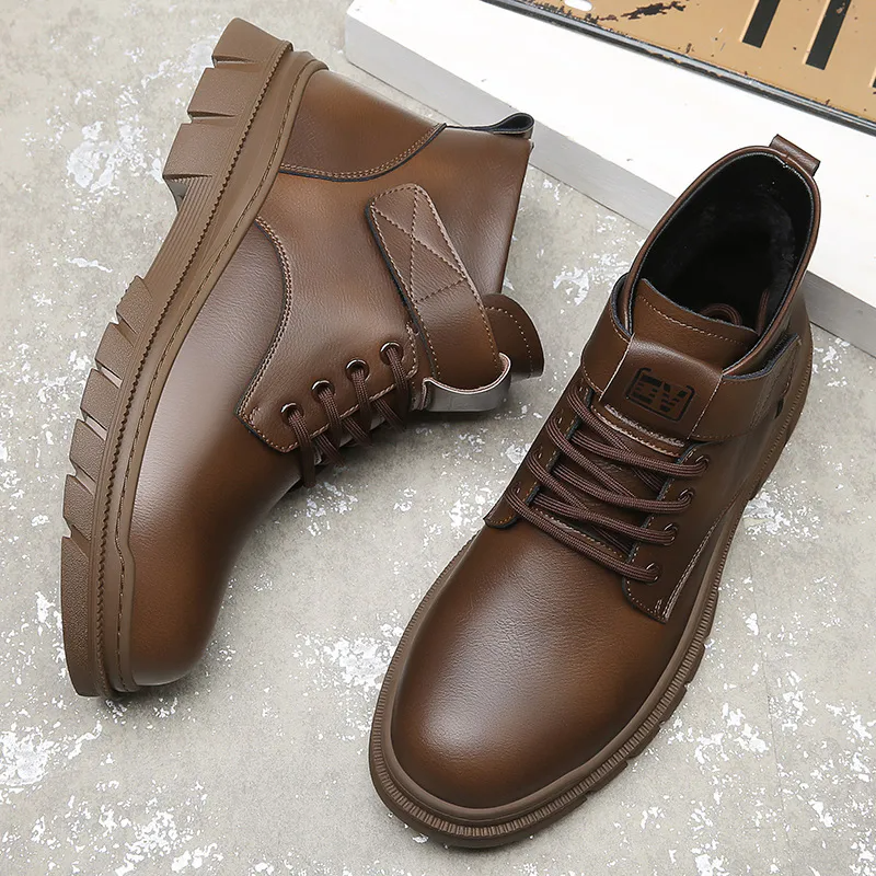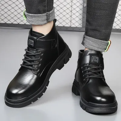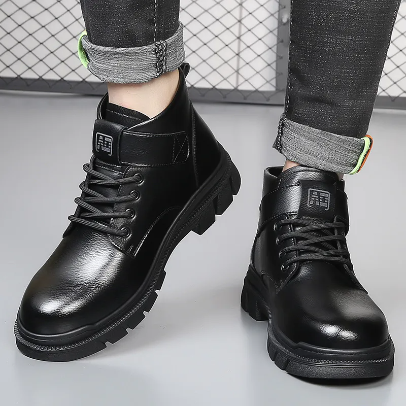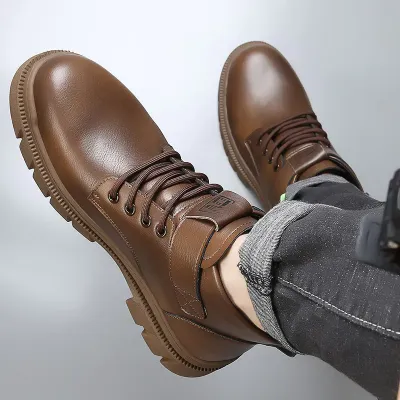 Color: The boots are available in sleek black and rich brown, providing versatile color choices.Upper Material: The genuine C-o-w-h-i-d-e leather upper delivers both strength and a premium look.Outsole Material: The rubber outsole offers reliable traction and durability for various surfaces.Insole Material: The PU leather insole ensures soft cushioning and all-day comfort.Toe Shape: The round head design allows for a comfortable fit and ample toe space.Closure Type: The lace-up closure allows you to adjust the fit for personalized support.Pattern Type: The solid pattern provides a timeless, adaptable style.Features: The boots are breathable, wear-resistant, lightweight, and anti-slip, enhancing both performance and comfort.
