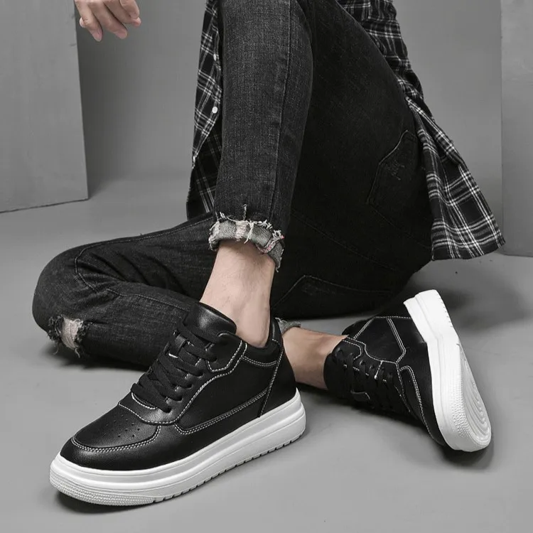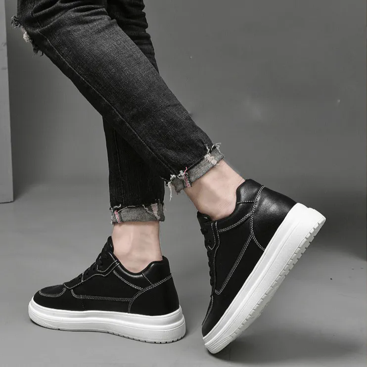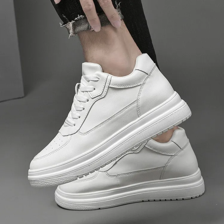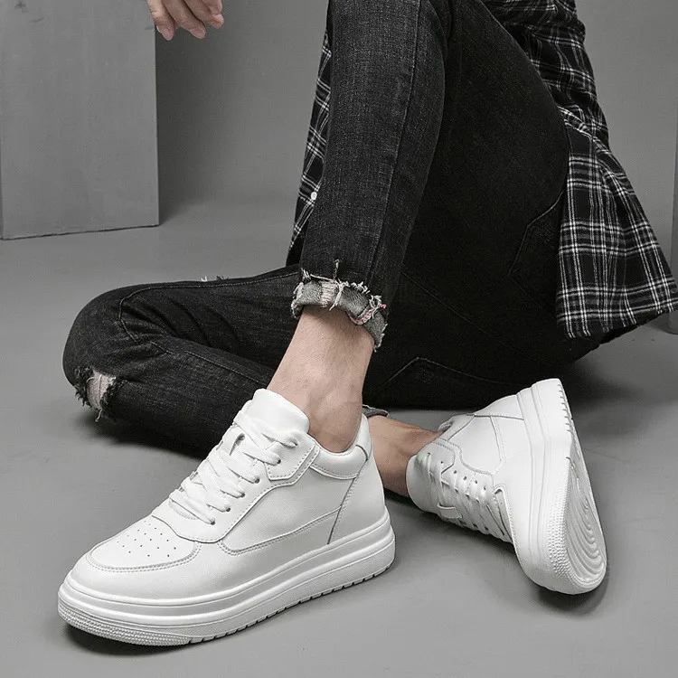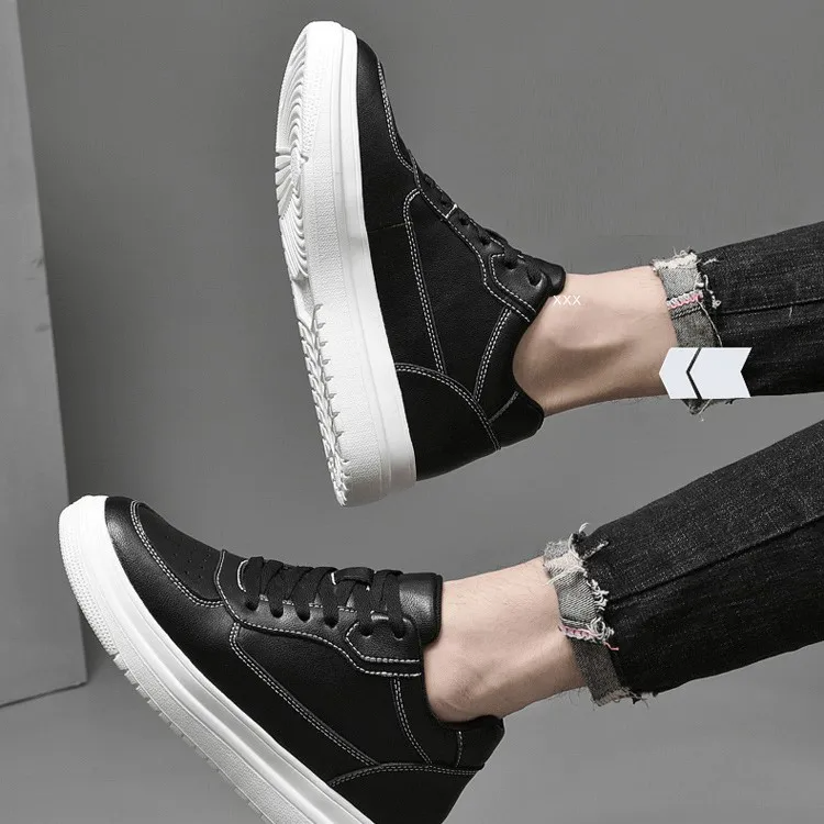 Color: The shoe is available in classic black and pristine white options.Upper Material: Genuine leather forms the shoe's upper, ensuring durability and a premium look.Outsole Material: Rubber comprises the outsole, offering excellent traction and longevity.Insole Material: PU leather lines the insole, providing comfort and support during wear.Toe Shape: Designed with a round head toe shape, the shoe maximizes comfort and natural foot movement.Closure Type: It features a lace-up closure, allowing for a secure and adjustable fit.Pattern Type: The shoe displays a solid pattern, emphasizing its timeless and versatile design.Features: Engineered with breathability, wear-resistance, lightweight construction, and anti-slip properties, suitable for various activities and everyday use.
