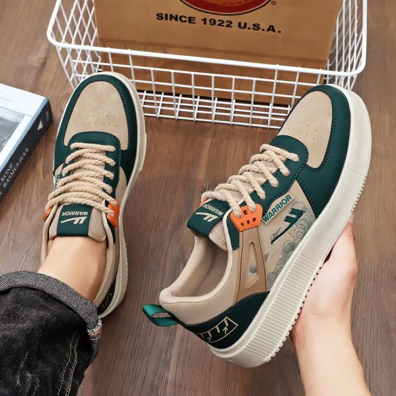 Color: The shoe showcases a stylish khaki dark green hue.Upper Material: The shoe features an upper made from durable PU leather.Outsole Material: The shoe incorporates a sturdy rubber sole for longevity.Insole Material: The insole of the shoe is crafted from comfortable fabrics.Toe Shape: The shoe sports a round head toe design for added comfort.Closure Type: The shoe secures with a classic lace-up closure.Pattern Type: The shoe boasts a solid, clean pattern.Features: The shoe offers breathability, wear resistance, lightweight comfort, and an anti-slip surface.
