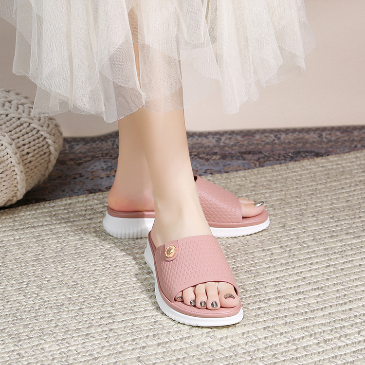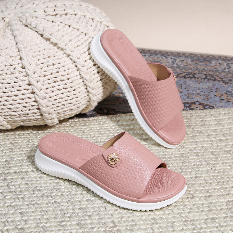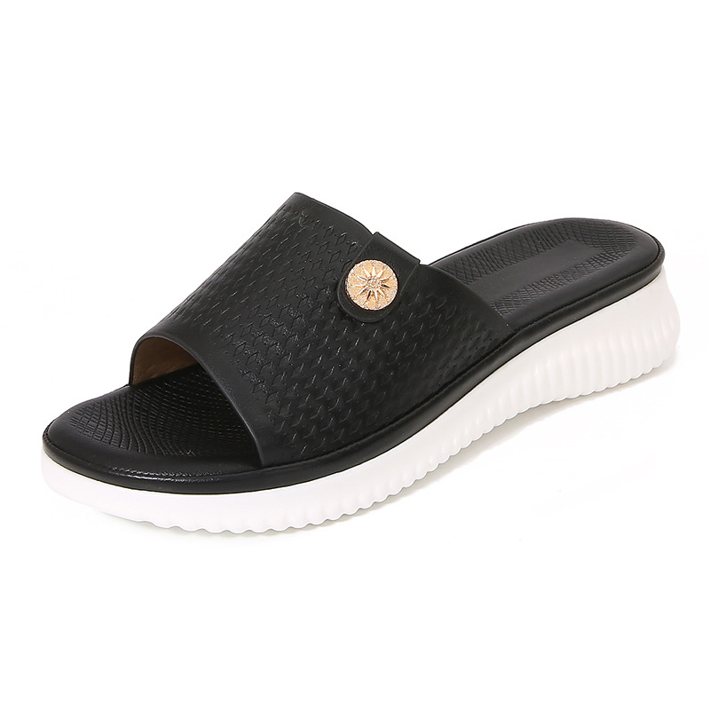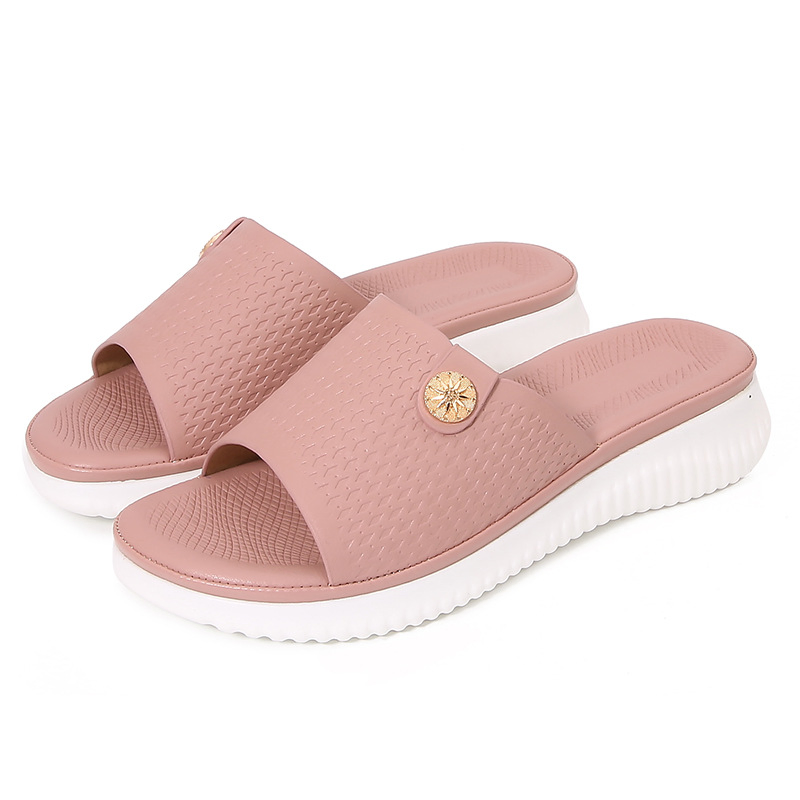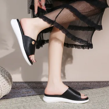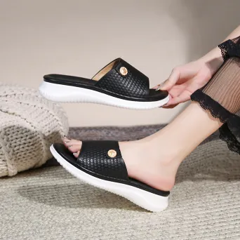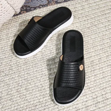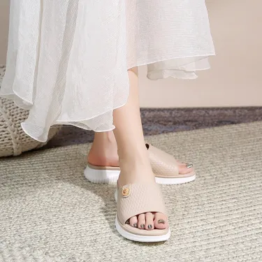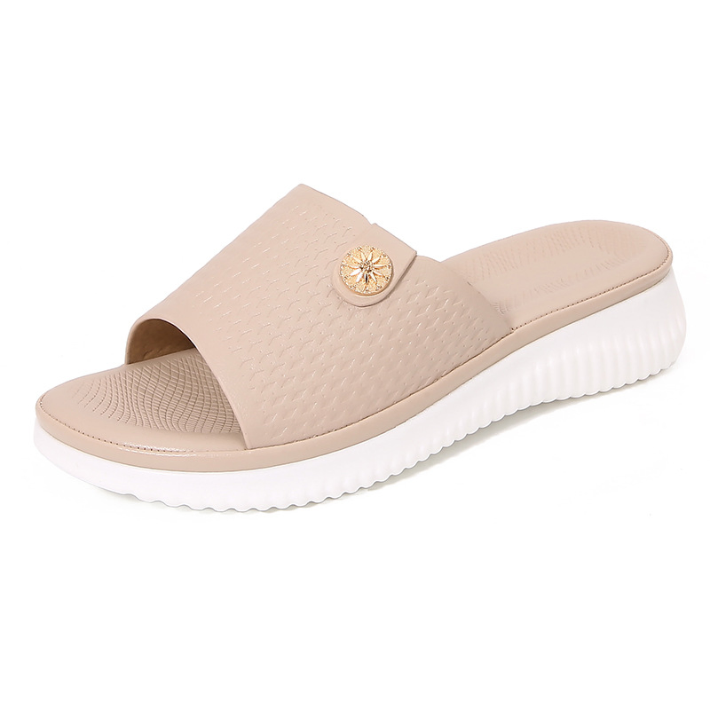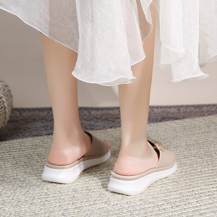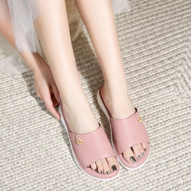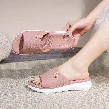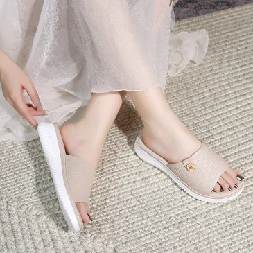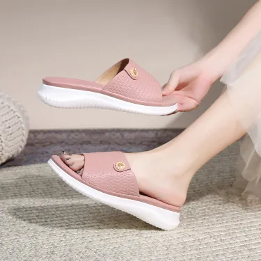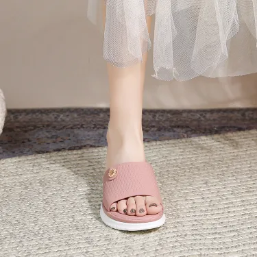 Color: The sandal comes in charming apricot, sleek black, and playful pink.Upper Material: PU leather offers a polished and durable finish.Outsole Material: The TPR sole provides excellent flexibility and grip.Insole Material: PU leather ensures cushioned comfort for all-day wear.Toe Shape: The open toe design adds a breezy and stylish touch.Closure Type: The slip-on design allows for effortless wear and removal.Heel Height: The 4 cm heel height provides a modest lift with lasting comfort.Pattern Type: The solid color pattern delivers a clean and classic look.Features: The sandal features breathability, wear-resistance, a lightweight build, and anti-slip properties for practical and fashionable use.