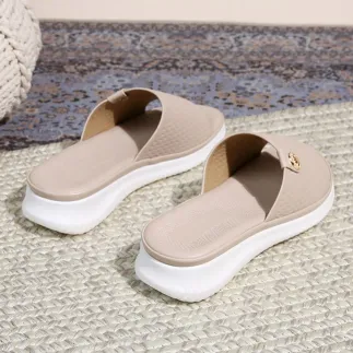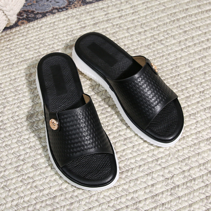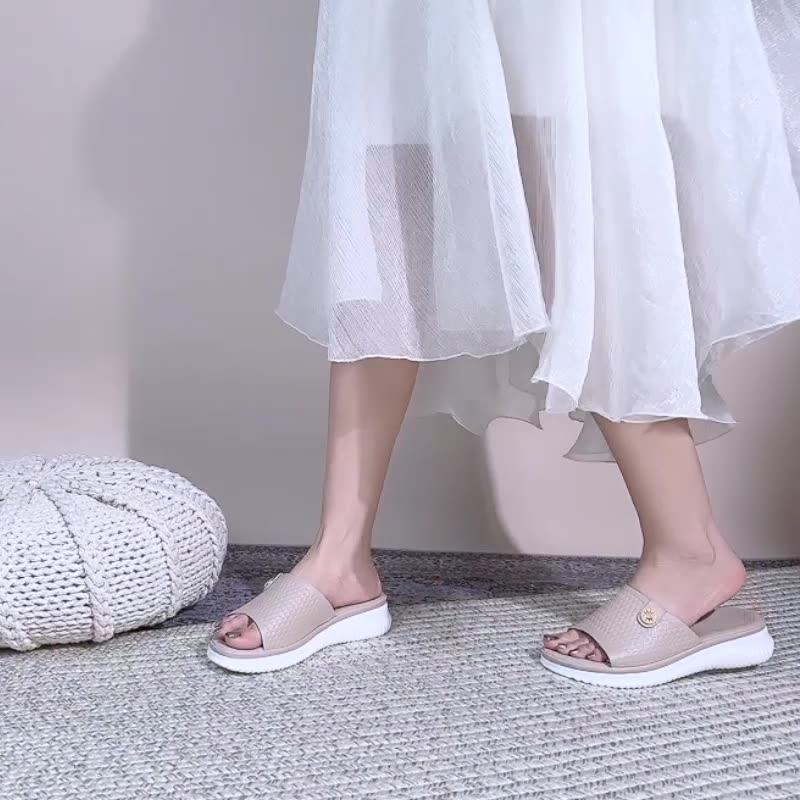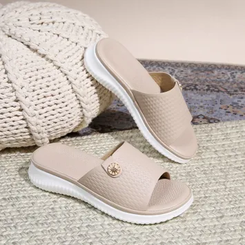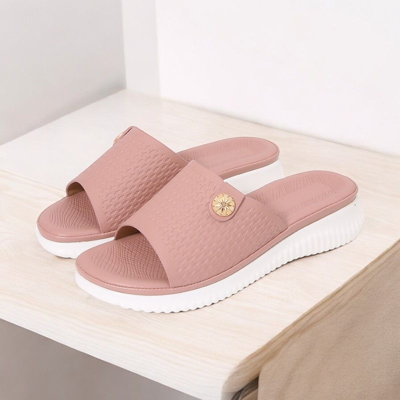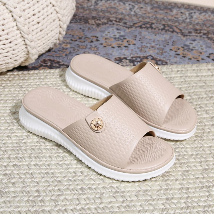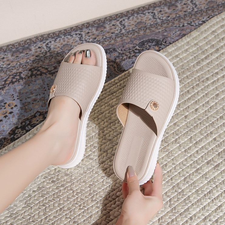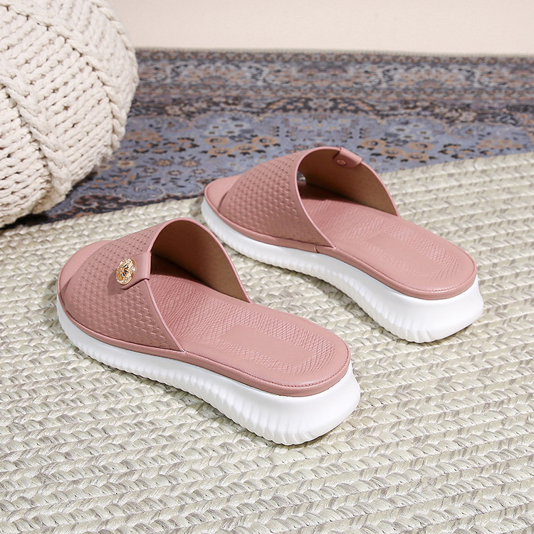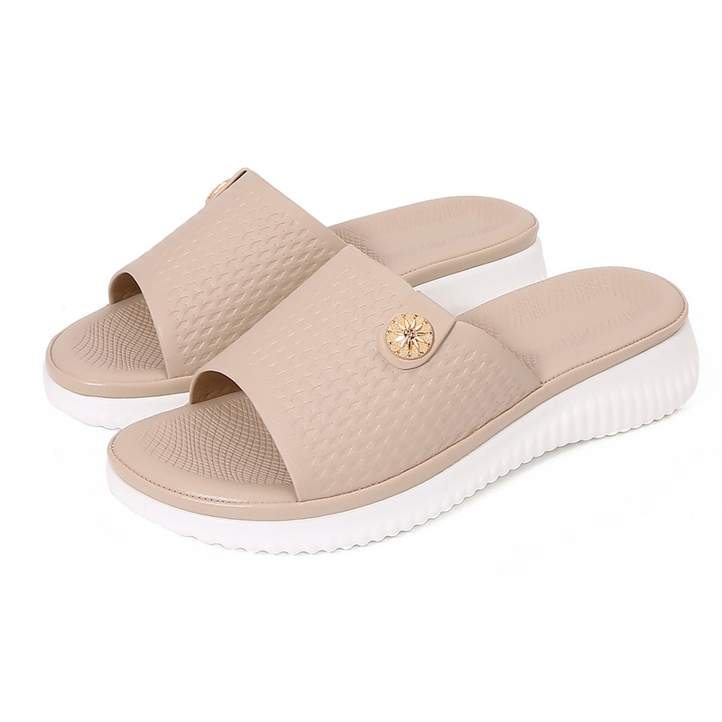 Color: The sandal comes in charming apricot, sleek black, and playful pink.Upper Material: PU leather offers a polished and durable finish.Outsole Material: The TPR sole provides excellent flexibility and grip.Insole Material: PU leather ensures cushioned comfort for all-day wear.Toe Shape: The open toe design adds a breezy and stylish touch.Closure Type: The slip-on design allows for effortless wear and removal.Heel Height: The 4 cm heel height provides a modest lift with lasting comfort.Pattern Type: The solid color pattern delivers a clean and classic look.Features: The sandal features breathability, wear-resistance, a lightweight build, and anti-slip properties for practical and fashionable use.