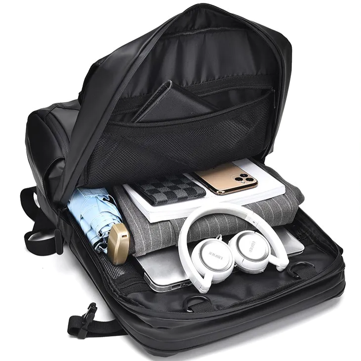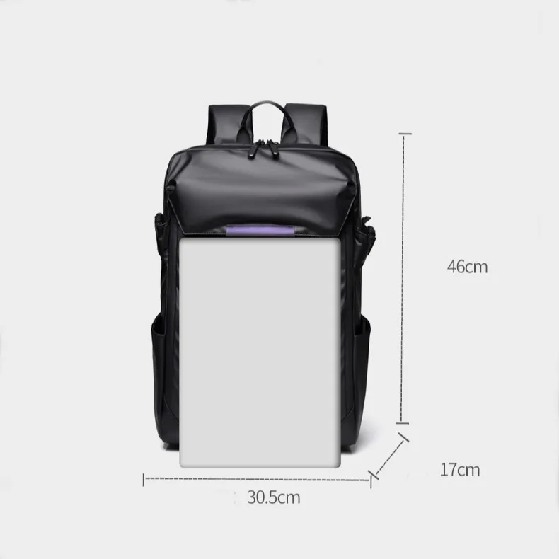 Color: The bag features a classic black color, ideal for any occasion.Upper Material: Made from Oxford cloth, the bag ensures durability and resistance to wear.Number of Shoulder Straps: It includes double shoulder straps for balanced and comfortable carrying.Opening Method: The zipper closure offers secure and convenient access to the bag’s contents.Hardness: The bag maintains a soft feel, making it easy to carry and use.Shape: As a men’s backpack, it combines practicality with a stylish design.Pattern: The solid color pattern provides a sleek and versatile look.Lining Material: Inside, the polyester lining adds a layer of protection and smoothness.Features: The bag offers waterproofing, multi-functionality, and a dedicated 14” computer compartment for versatile use.Size: Measuring 18.1” x 12” x 6.7”, it provides ample space while remaining compact.Weight: Weighing just 400 grams, the bag is lightweight yet functional.