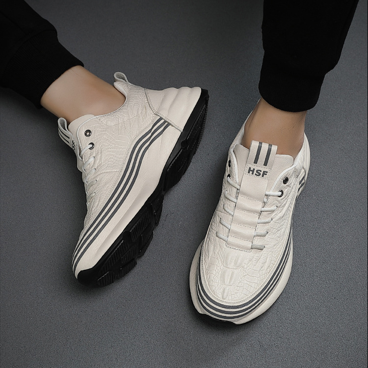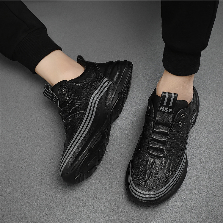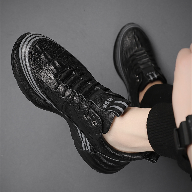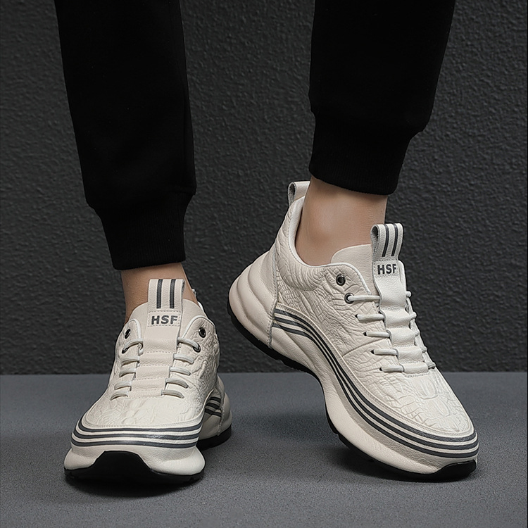 Color: Black, WhiteUpper Material: Genuine Leather (Cowhide)Outsole Material: Rubber SoleInsole Material: PU LeatherToe Shape: Round HeadClosure Type: Lace upPattern Type: SolidFeatures: Breathable, wear-resistant, lightweight, anti slip