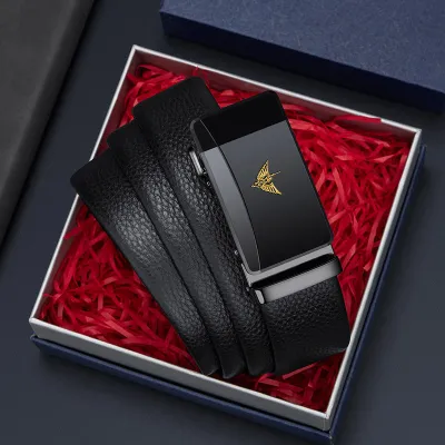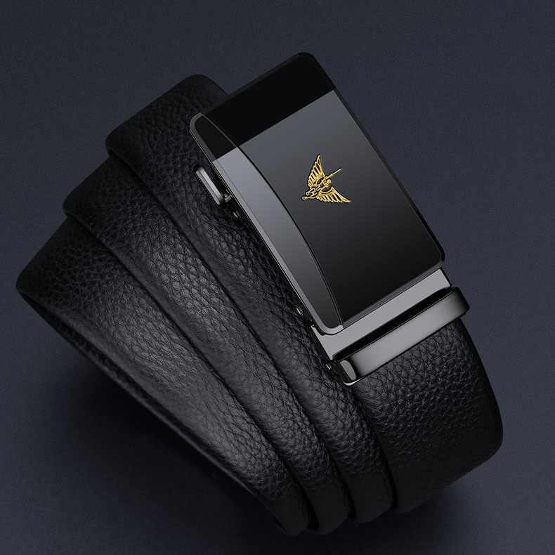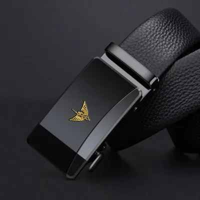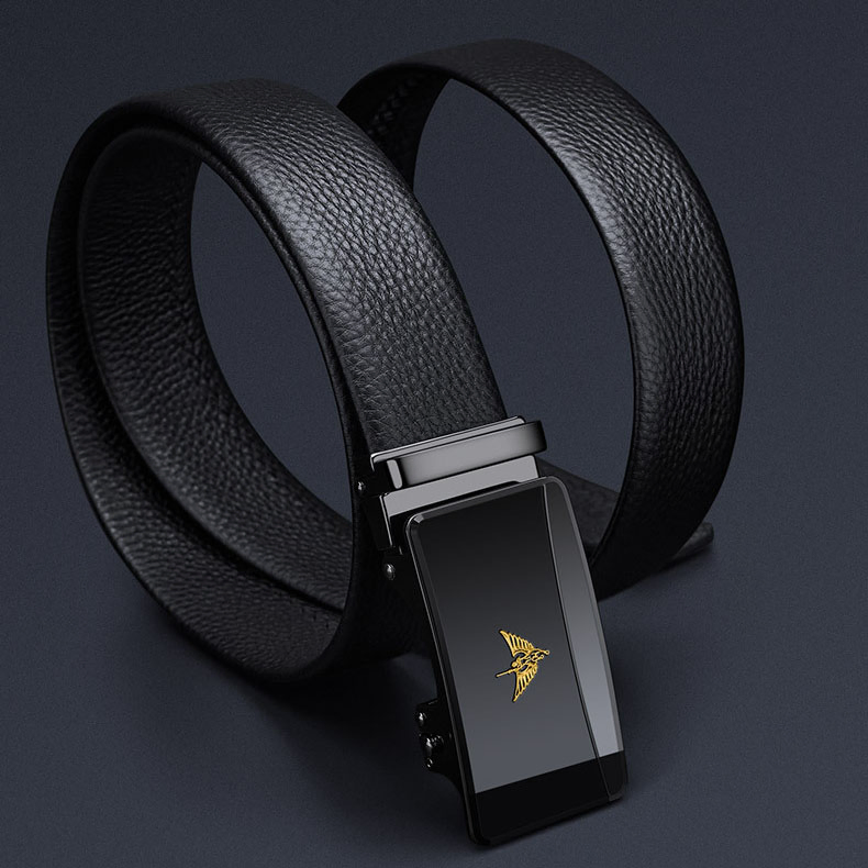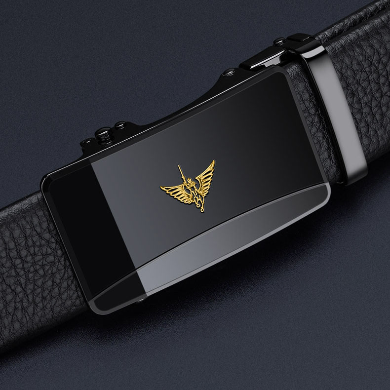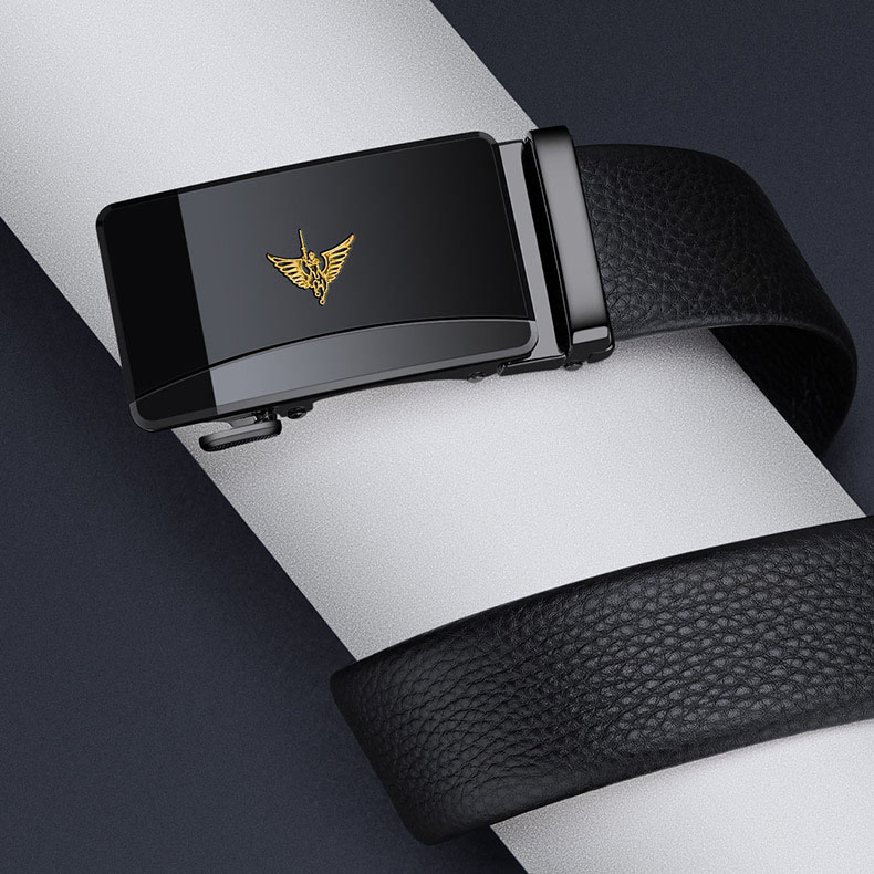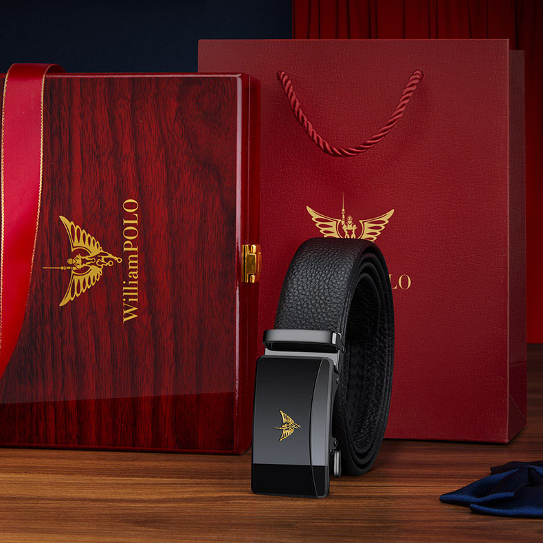Buckle Color: The buckle features a gunmetal finish for the black label and a gold-tone for the gold label, providing a distinctive and upscale appearance.Belt Color: The belt showcases a sleek black color, making it a versatile accessory for various outfits.Brand: William POLO offers this belt with a reputation for quality and stylish design.Upper Material: Genuine leather delivers both a luxurious feel and long-lasting durability.Fastening Method: The automatic buckle ensures effortless and secure fastening with a modern touch.Lining: The polyester lining enhances the belt's comfort and extends its wearability.Pattern: The solid color design gives the belt a clean and classic look.Length: Measuring 120 ”, the belt fits a broad range of waist sizes comfortably.Width: The belt's 3.8 ” width strikes a balance between elegance and practicality.Weight: Weighing 350 grams, the belt offers a solid, substantial feel without being cumbersome.