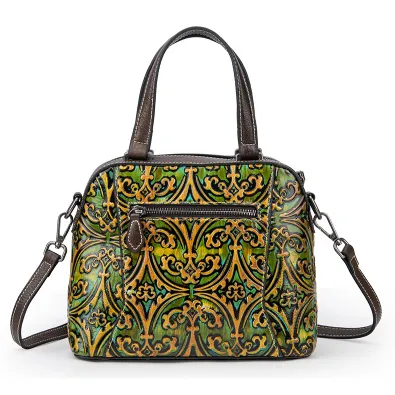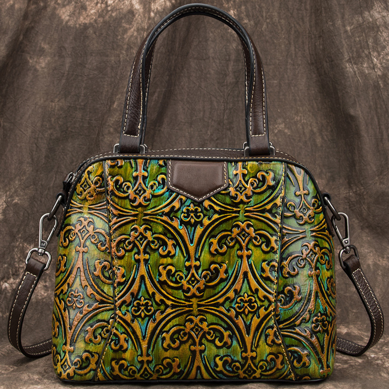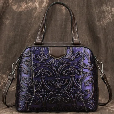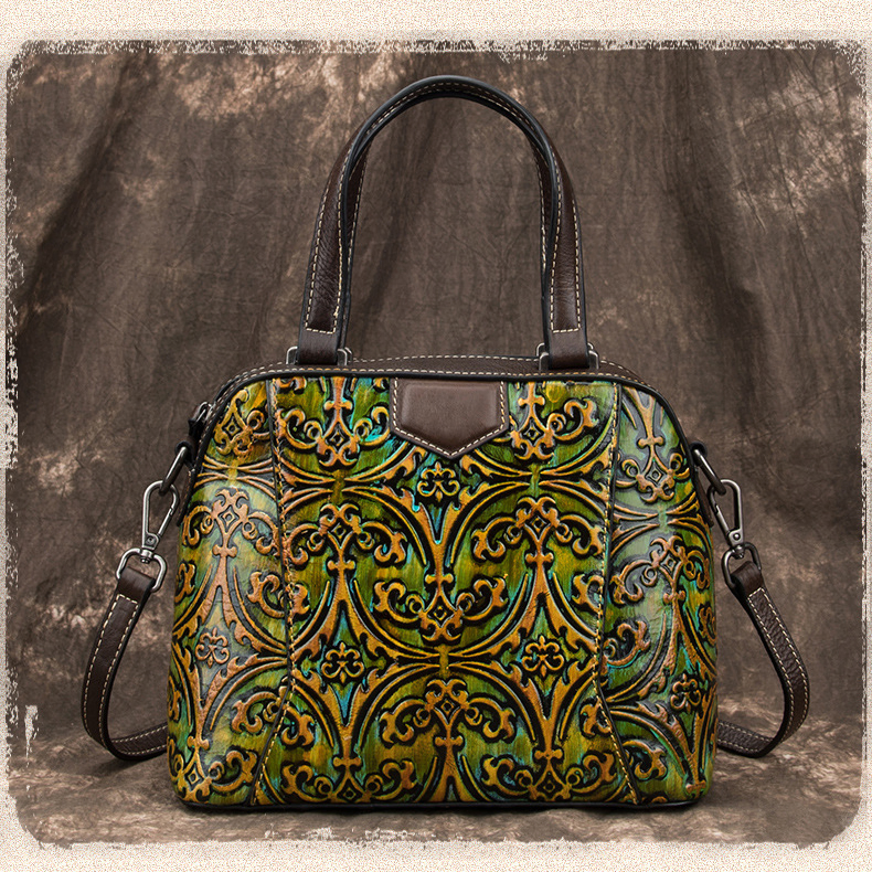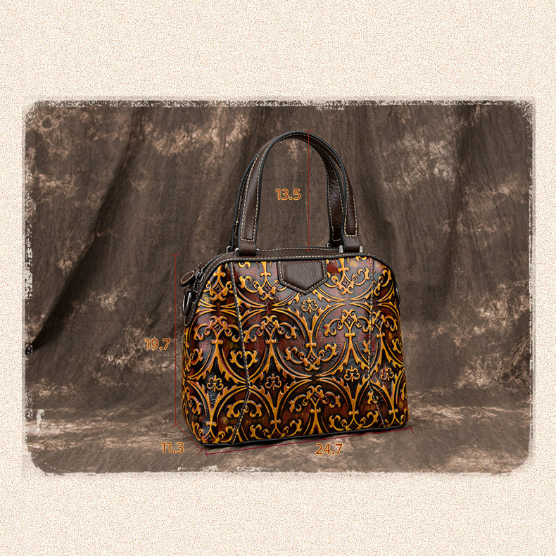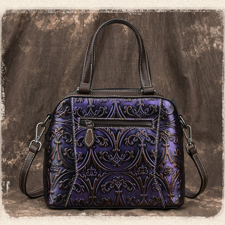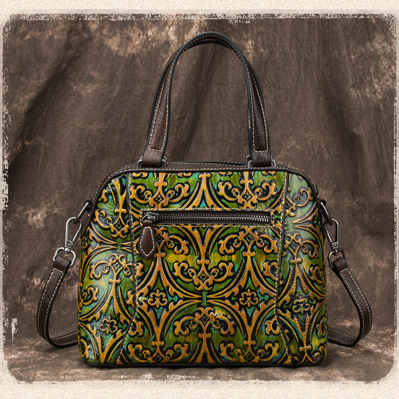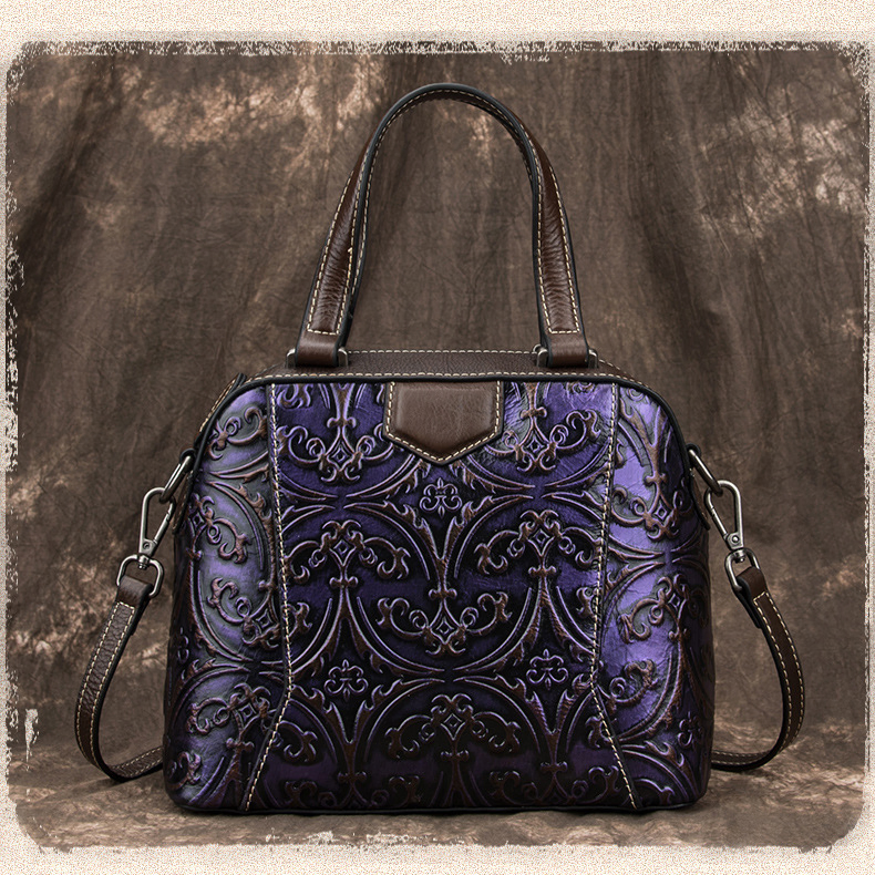 Color: Choose from Vintage Green, Vintage Purple, or Vintage Reddish Brown to complement your wardrobe.Upper Material: The handbag is made from genuine C-o-w-h-i-d-e leather, ensuring both elegance and durability.Hardness: It features a soft and flexible structure for comfortable handling.Number of Shoulder Straps: The design includes a single shoulder strap for easy and convenient carrying.Opening Method: The handbag opens with a secure and smooth zipper for quick access.Lining Texture: Inside, the PU leather lining adds a touch of sophistication and is simple to maintain.Pattern Type: The solid pattern offers a timeless and classic look.Size: With dimensions of 9.72 inches in length, 7.75 inches in height, and 4.44 inches in width, this handbag strikes a balance between compactness and functionality.