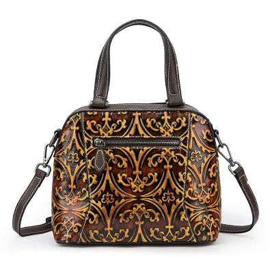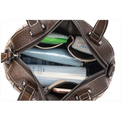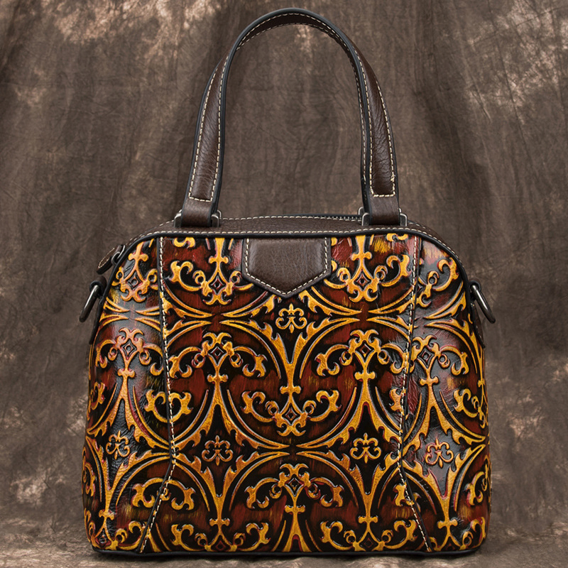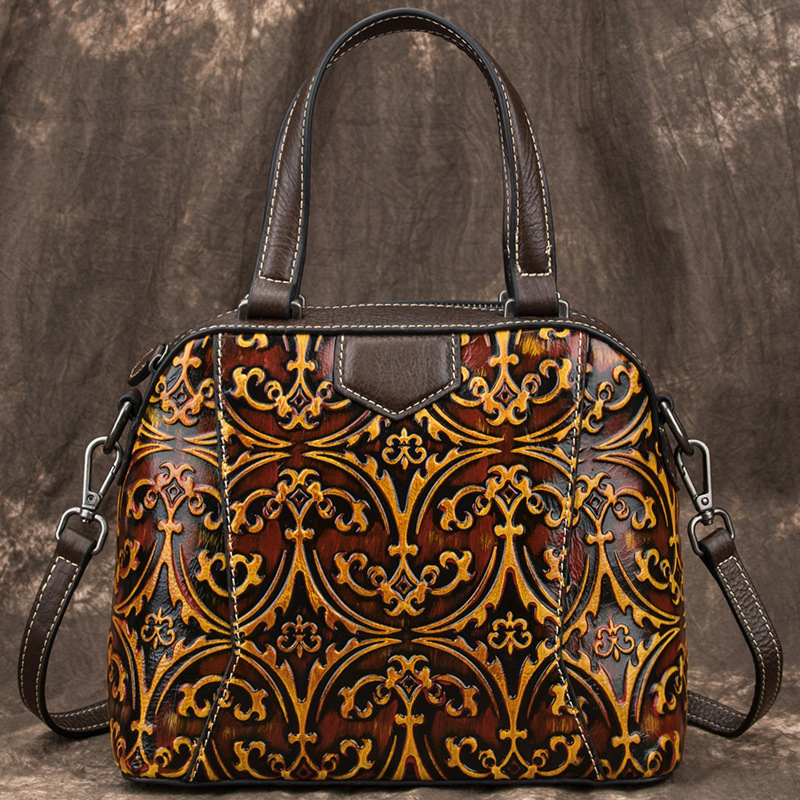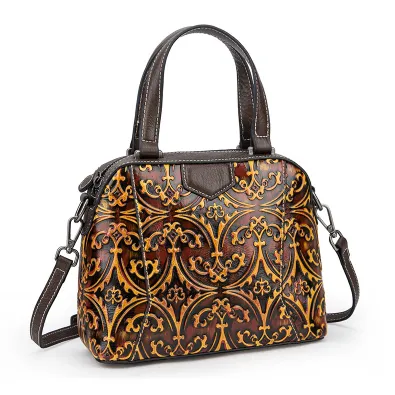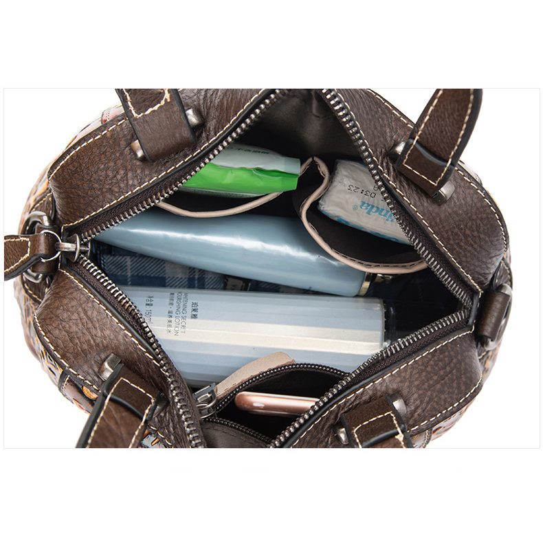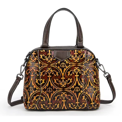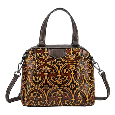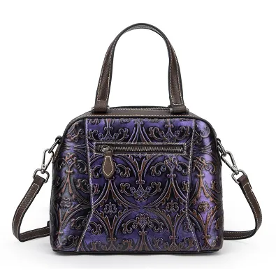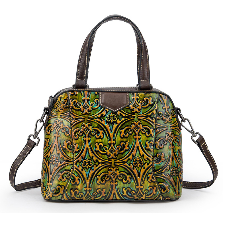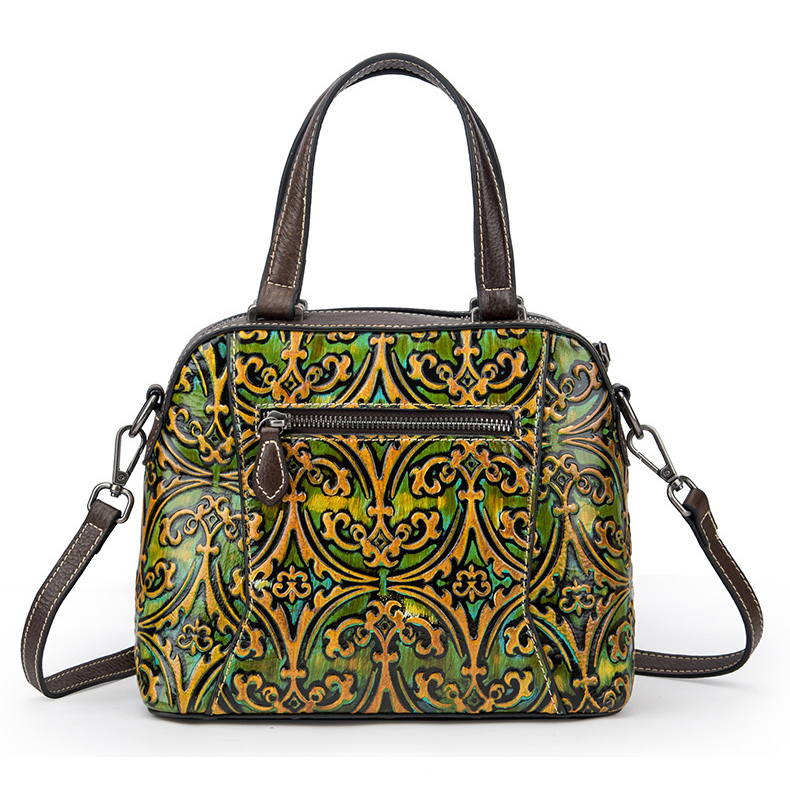 Color: Choose from Vintage Green, Vintage Purple, or Vintage Reddish Brown to complement your wardrobe.Upper Material: The handbag is made from genuine C-o-w-h-i-d-e leather, ensuring both elegance and durability.Hardness: It features a soft and flexible structure for comfortable handling.Number of Shoulder Straps: The design includes a single shoulder strap for easy and convenient carrying.Opening Method: The handbag opens with a secure and smooth zipper for quick access.Lining Texture: Inside, the PU leather lining adds a touch of sophistication and is simple to maintain.Pattern Type: The solid pattern offers a timeless and classic look.Size: With dimensions of 9.72 inches in length, 7.75 inches in height, and 4.44 inches in width, this handbag strikes a balance between compactness and functionality.