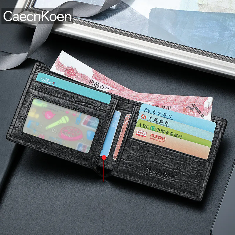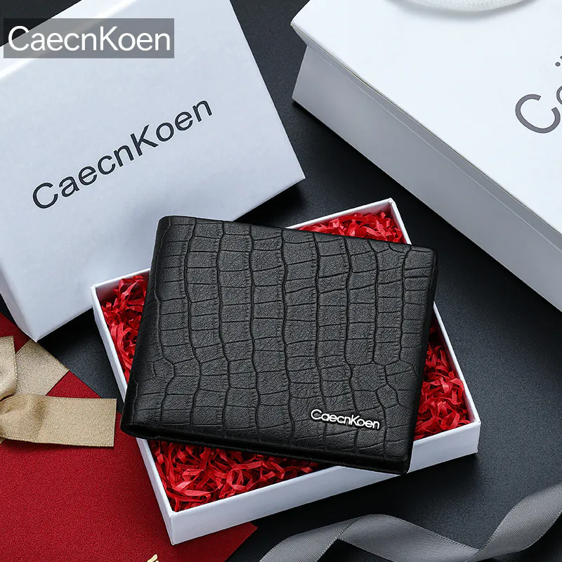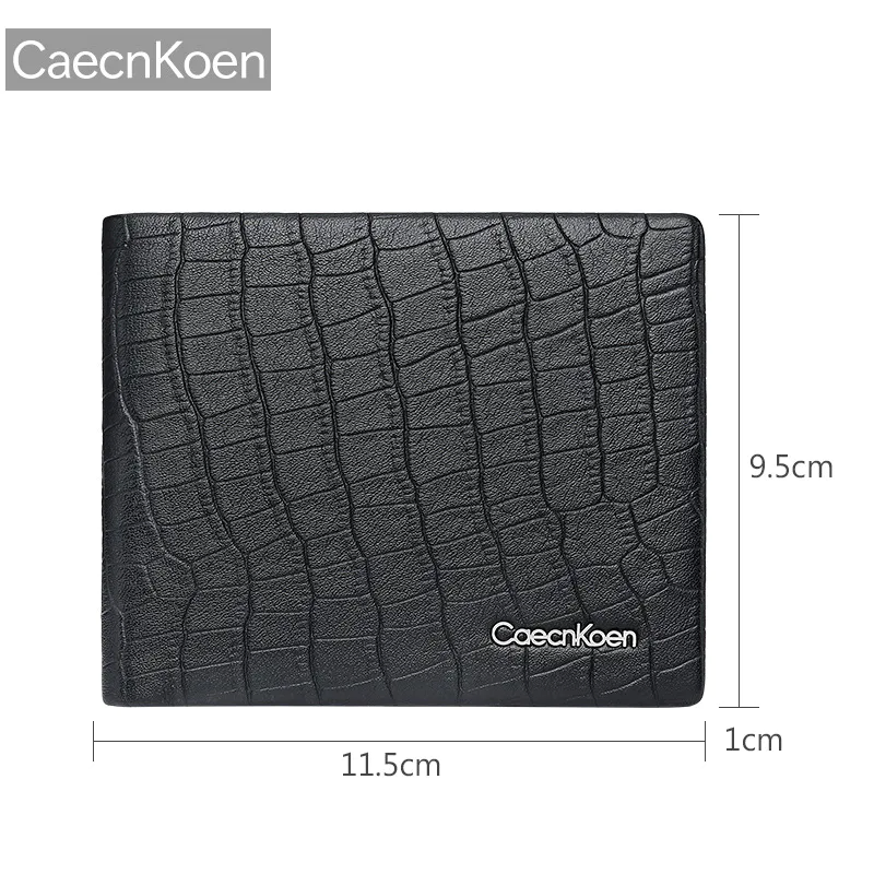 Color: The wallet is available in a sleek and stylish black.Brand: CaecnKoen offers this high-quality wallet.Upper Material: They use genuine leather for the upper material, ensuring long-lasting use.Folding: The wallet features a convenient 2-fold design for better organization.Lining: Inside, synthetic leather and fabrics provide a durable and refined finish.Pattern: It boasts a solid color pattern, making it a versatile accessory.Length: The wallet measures 4.52 inches in length, making it compact yet spacious.Width: At 3.74 inches wide, it comfortably fits in most pockets.